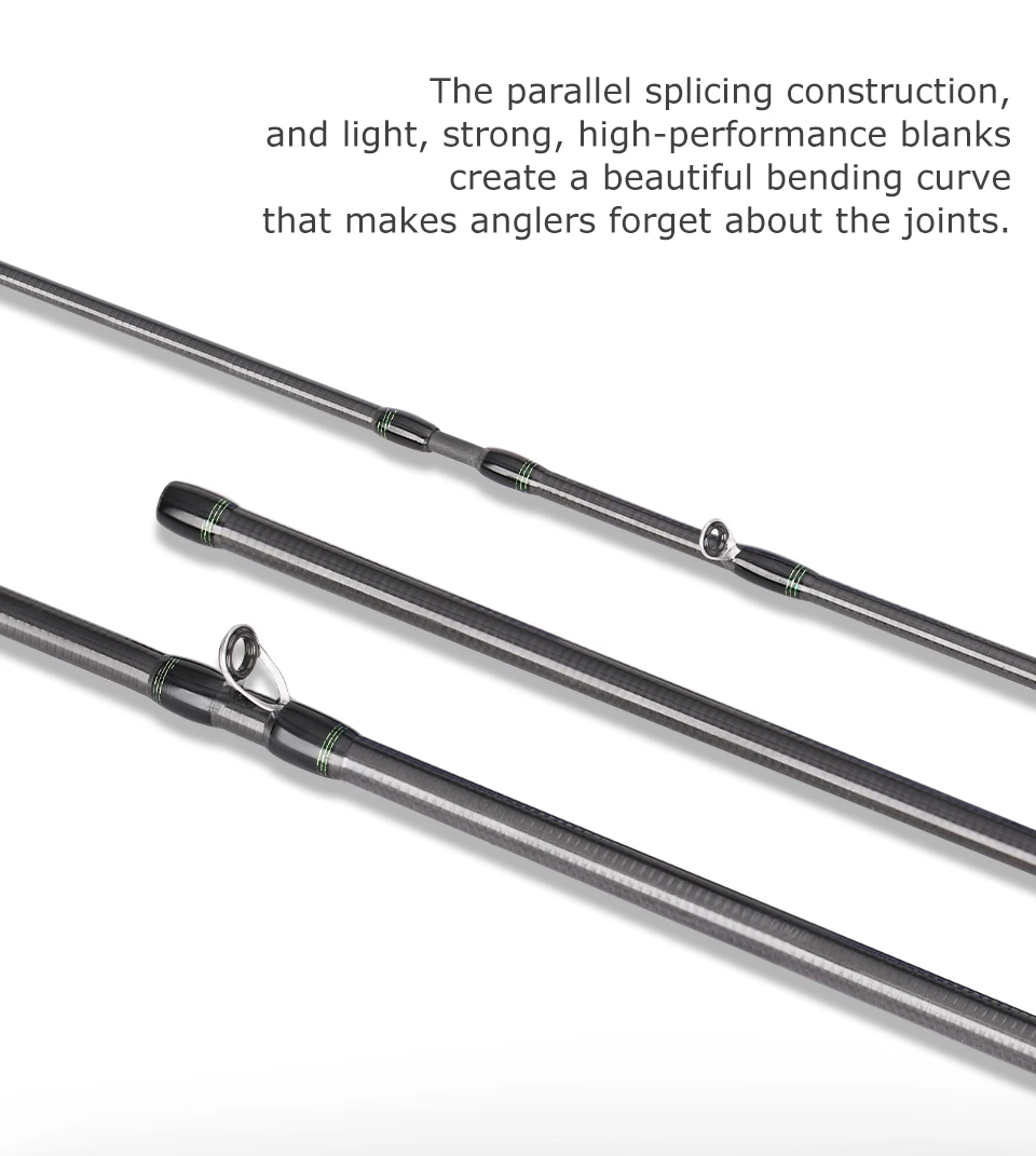 La Construcción de empalme paralelo y los espacios en blanco ligeros, fuertes y de alto rendimiento crean una hermosa curva de flexión que hace que los pescadores se olviden de las articulaciones.