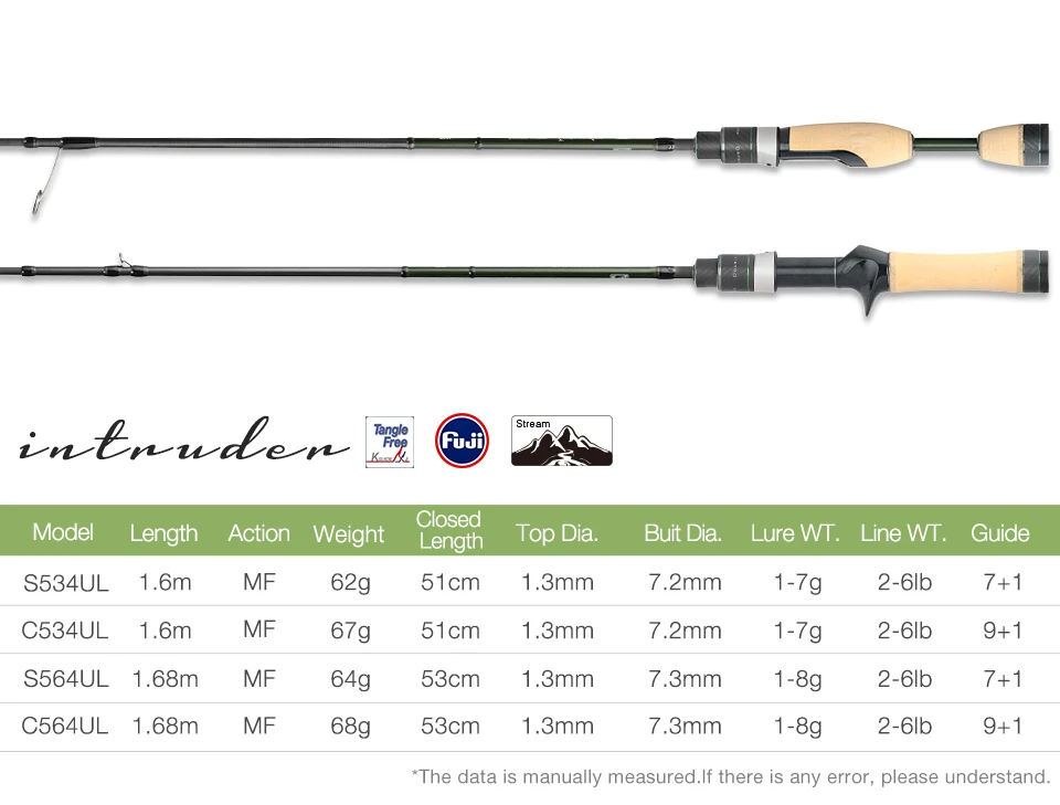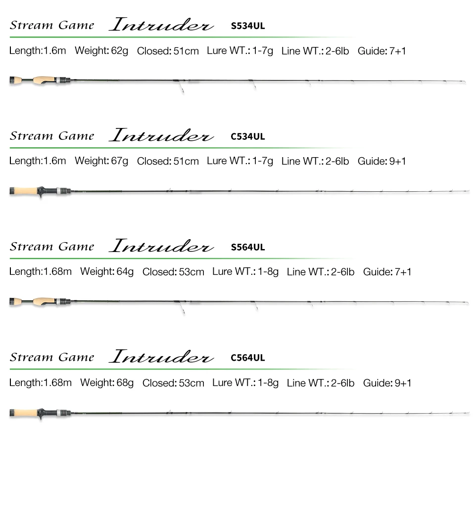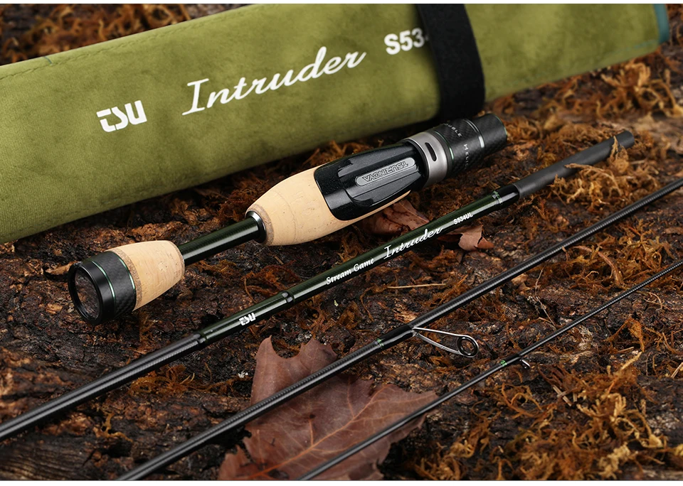 Serie INTRUDER, una varilla corta de paquete de 4 piezas, modelo fino de cebo. Adecuado para cabeceras y arroyos de montaña, disfrute de encuentros y batallas con truchas.