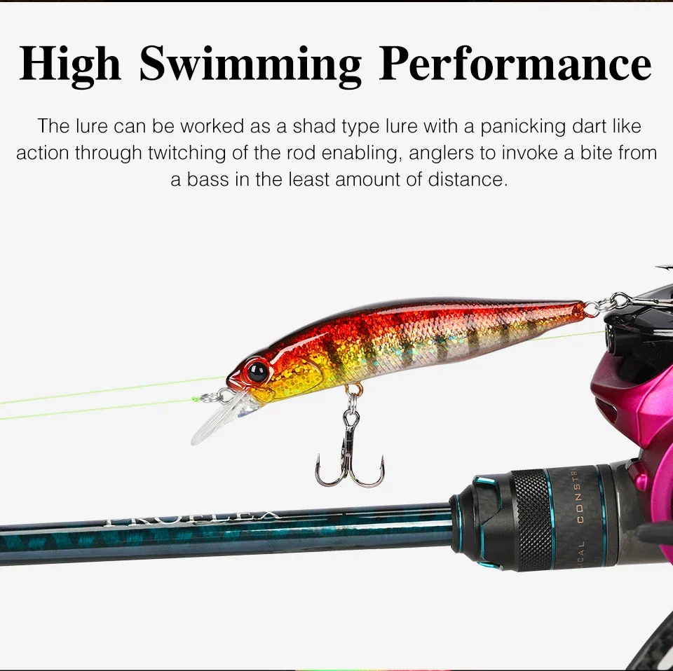 La vibración se debe a que se transmite una acción de dardo más estrecha.El resultado es una acción mímica similar a un pez que fuga.Esto en consecuencia activa el interruptor de alimentación de la lubina tan pronto como el señuelo entre en vista incluso con una recuperación sencilla y lenta.