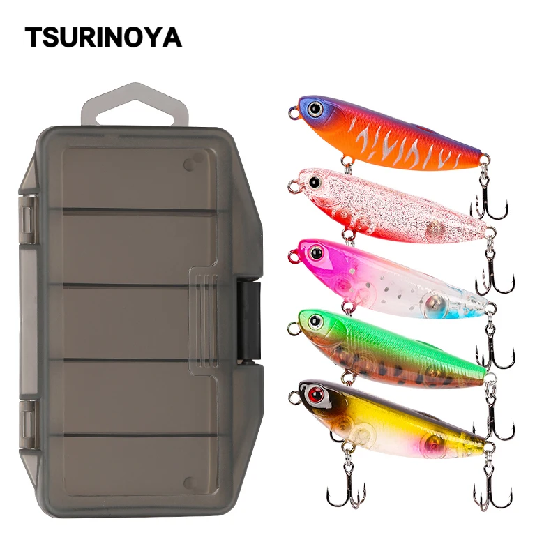 Juego de lápices flotantes TSURINOYA DW62 50mm 5,0G 5 piezas Topwater cebos duros artificiales Trour Pike señuelo de pesca aparejos de pesca de lubina