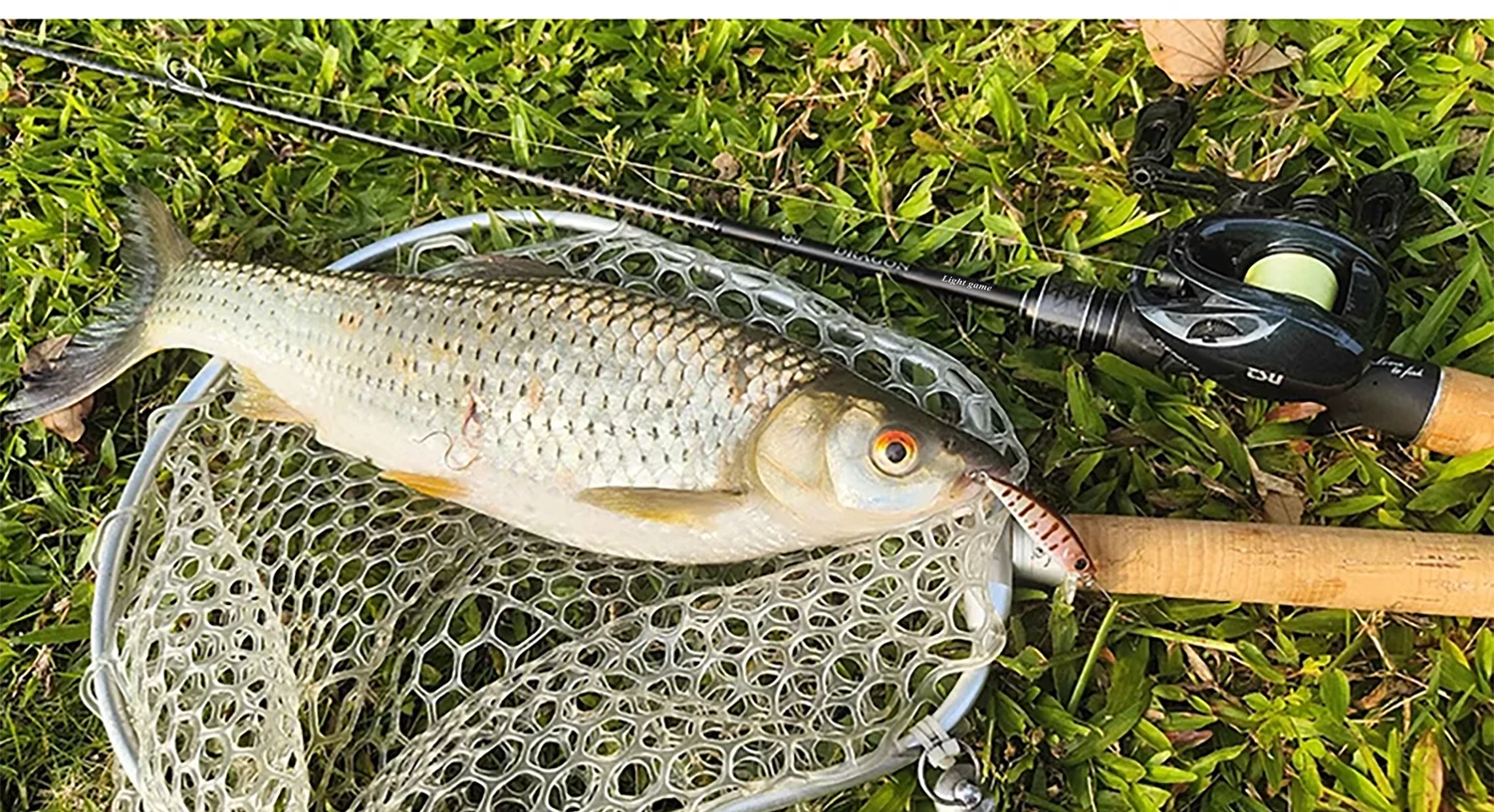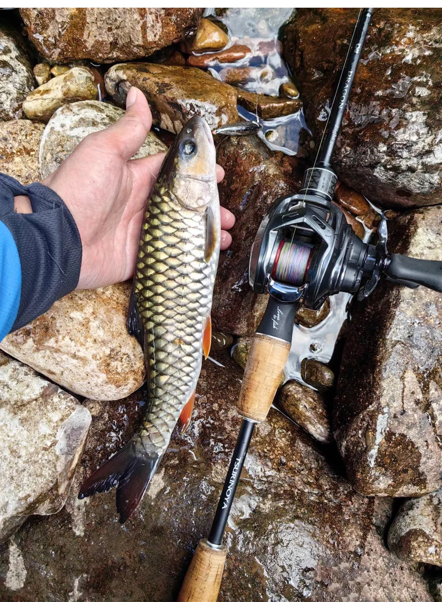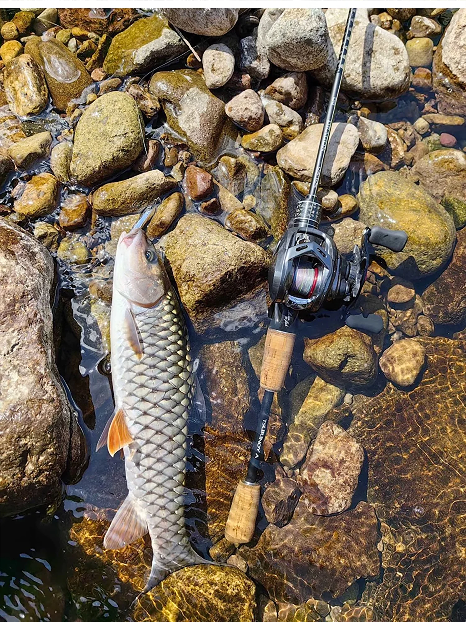¡La caña de spinning es buena! Atrapé peces de inmediato... ¡se ve hermosa!