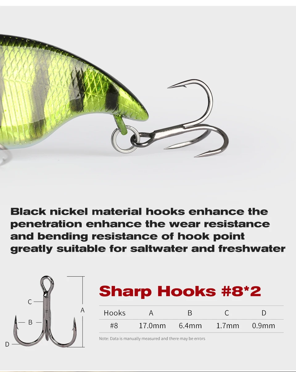 Una silueta del tamaño de un bocado suprime la intimidación visual, para atraer a los peces a morder sin dudarlo.