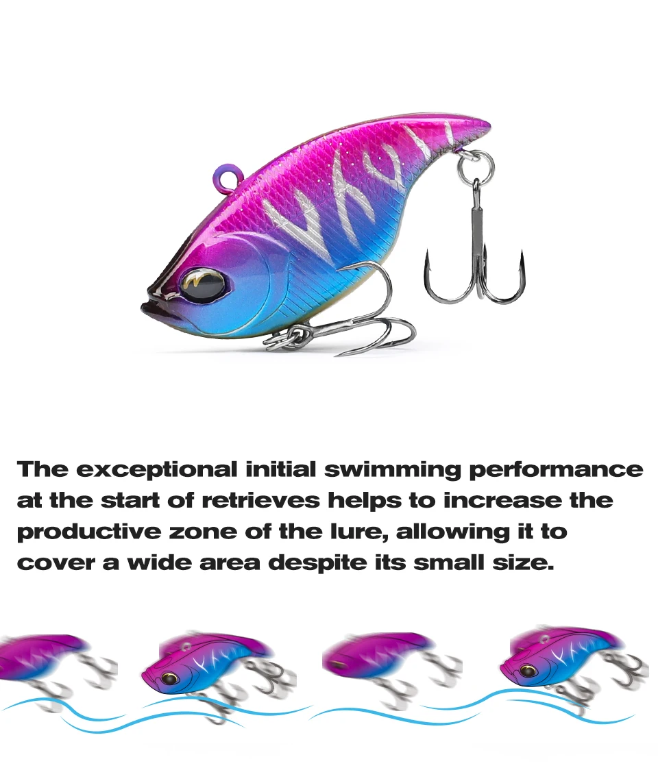 El excepcional rendimiento de natación inicial al inicio de las recuperaciones ayuda a aumentar la zona productiva del señuelo, lo que le permite cubrir un área amplia a pesar de su pequeño tamaño.