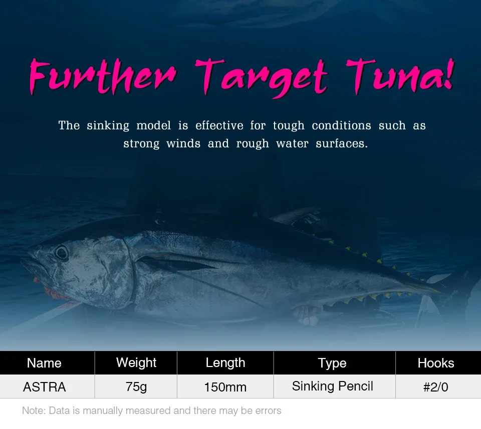 TSURINOYA lápiz que se hunde 150mm 75g señuelo de pesca pesada ASTRA 150S juego grande en alta mar cebos duros artificiales pesca en el mar Stickbait