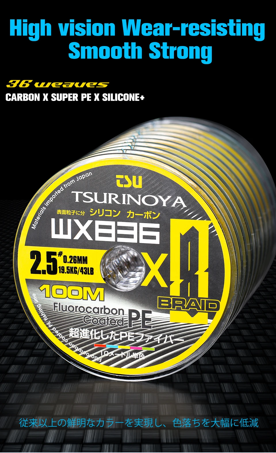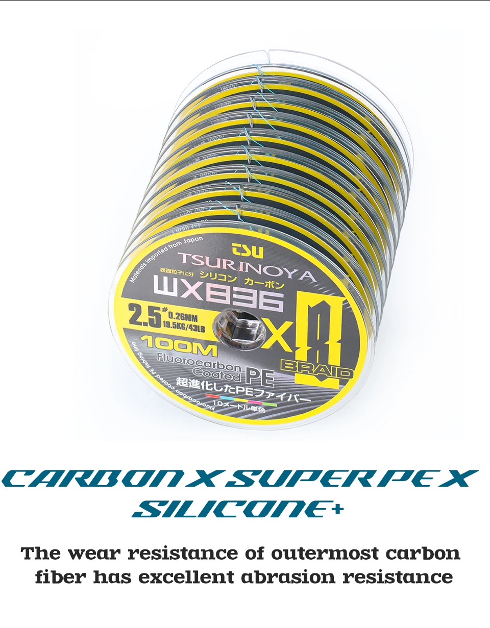 TSURINOYA 100-1000m pesca de agua salada PE línea 36 tejidos 8 hebras multifilamento línea 25-37lb línea súper fuerte para peces grandes