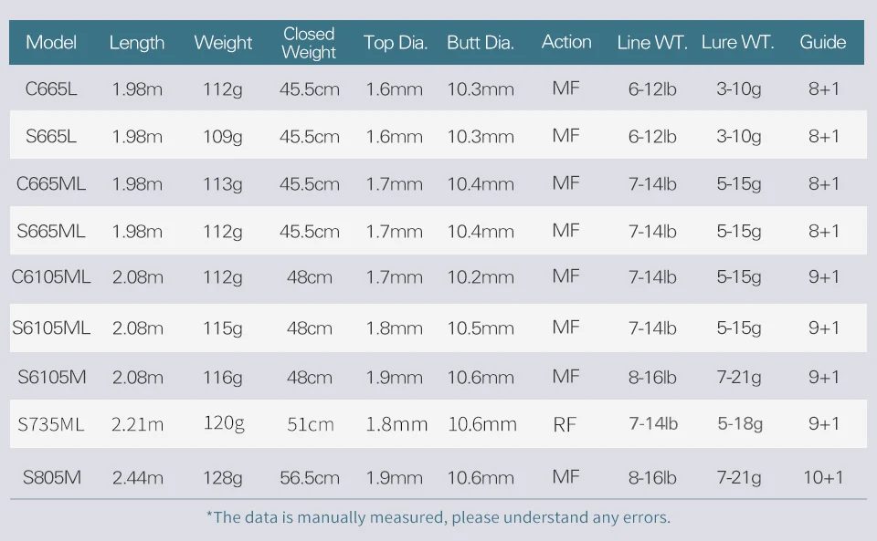 -Las varillas utilizan principalmente un tubo de carbono de alto módulo 30T+40T con un tejido cruzado especial para minimizar la pérdida de energía y lograr una buena versatilidad, distancia y precisión para un mejor manejo del territorio inexplorado.