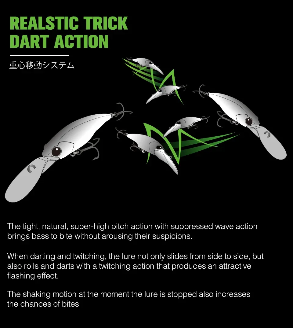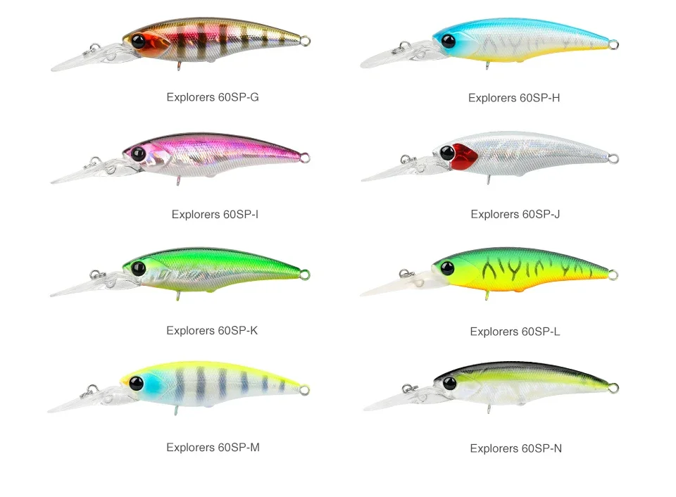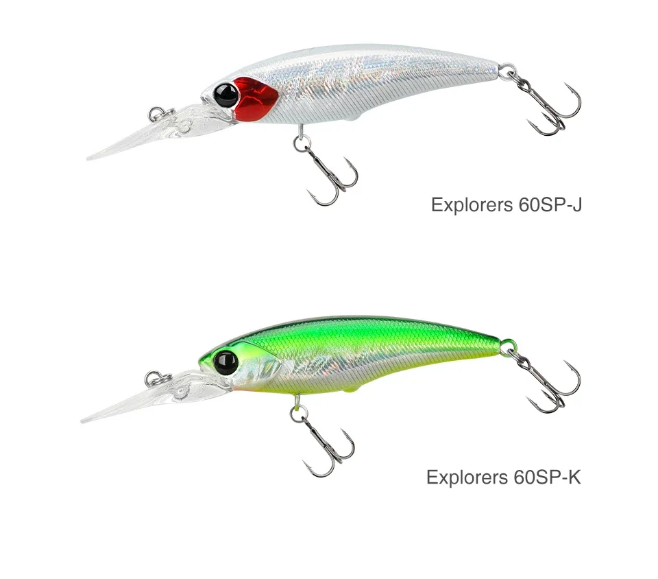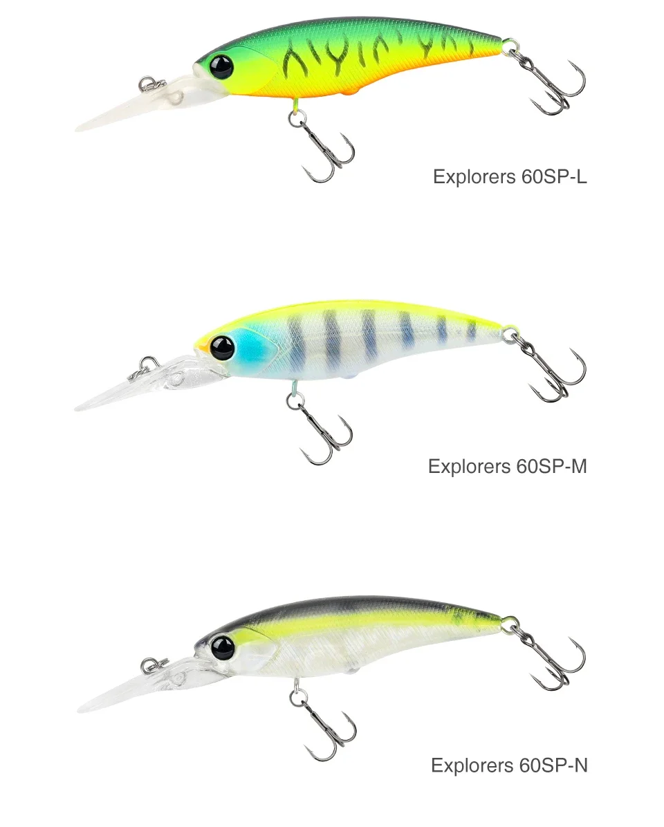 Los exploradores 60SP tienen una acción de tono apretada, natural y súper alta, con la contracción en movimiento, el cebo realiza una acción fugaz y produce un atractivo efecto intermitente.
