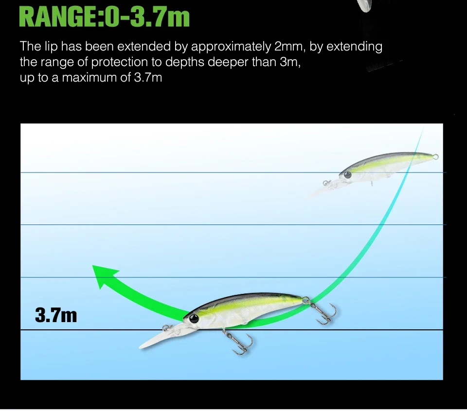 El labio alargado hace que alcance una profundidad máxima de 3,7 m.Después de ingresar al agua, puede llegar rápidamente a la capa de agua objetivo para buscar, mientras mejora la capacidad de paso de obstáculos.