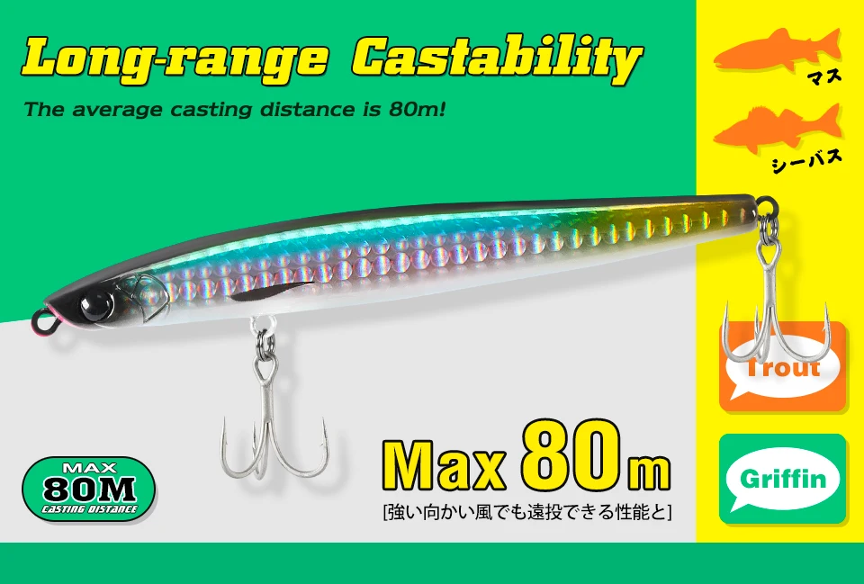 Los movimientos del centro de gravedad de acero de tungsteno en el cuerpo delgado brindan rendimiento y respuesta de acción para lanzamientos largos incluso con vientos fuertes.