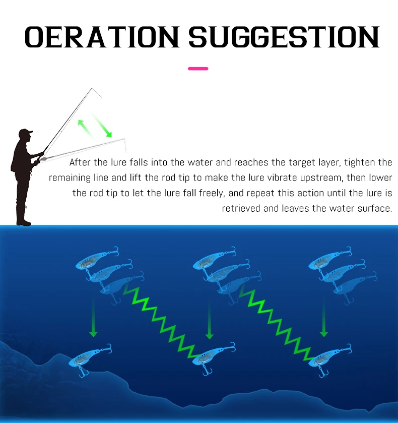 La actitud de vuelo estable debido al diseño del centro de gravedad bajo, realiza la carrera de balanceo lateral abdominal, el cebo que destaca en la misma clase, brindando una gran ventaja en la pesca costera.
