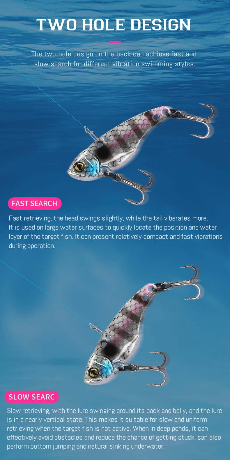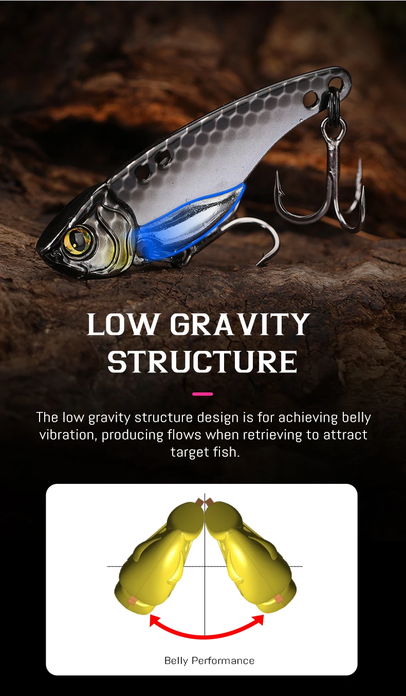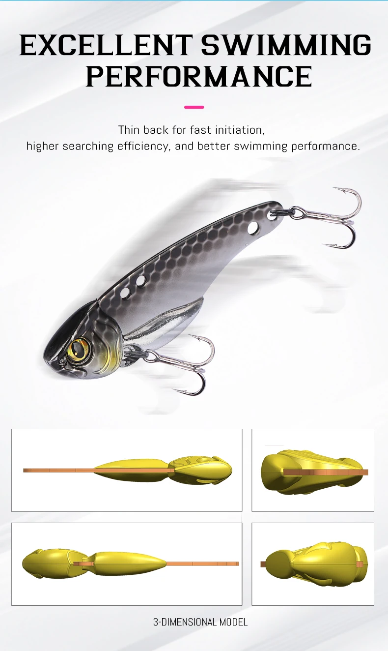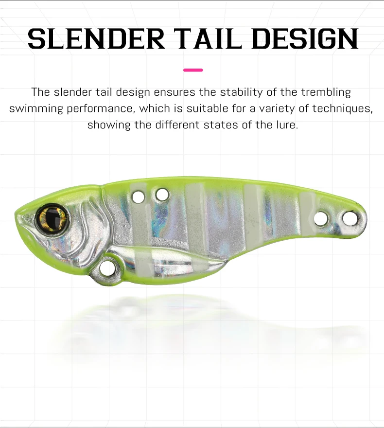 Diseño de cola de pez delgada, garantiza una acción oscilante estable y seductora.