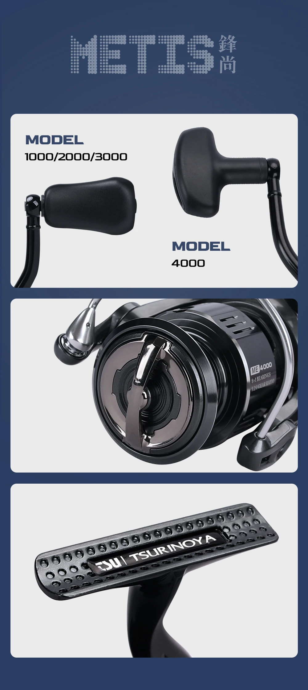 TSURINOYA METIS 1000 2000 3000 carrete de pesca giratorio 8kg carrete de señuelo de arrastre ligero 8 + 1 rodamientos bobina de pesca de agua salada de lubina