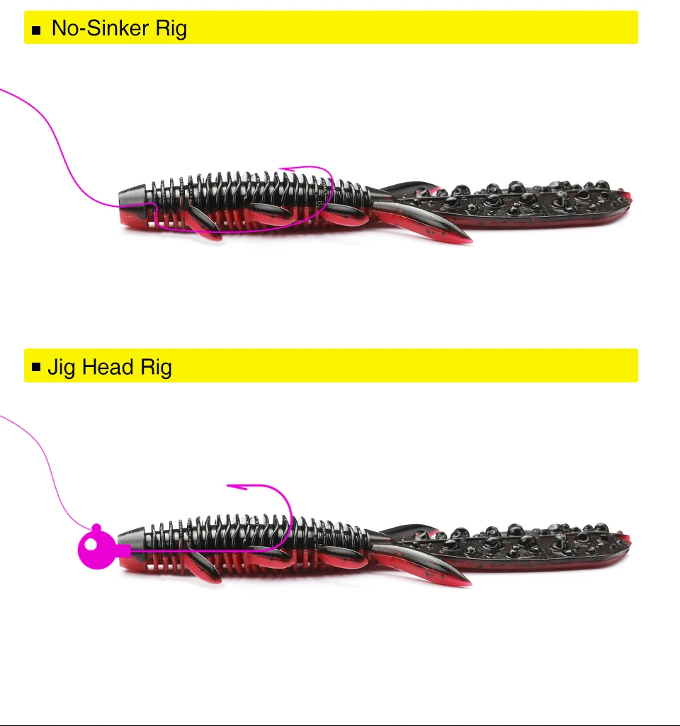 7.Todas estas características ofrecen un cebo versátil que destaca sin importar cómo elijas montarlo: Texas Rig, Carolina Rig, Free Rig, Saber Rig o como jig trailer.