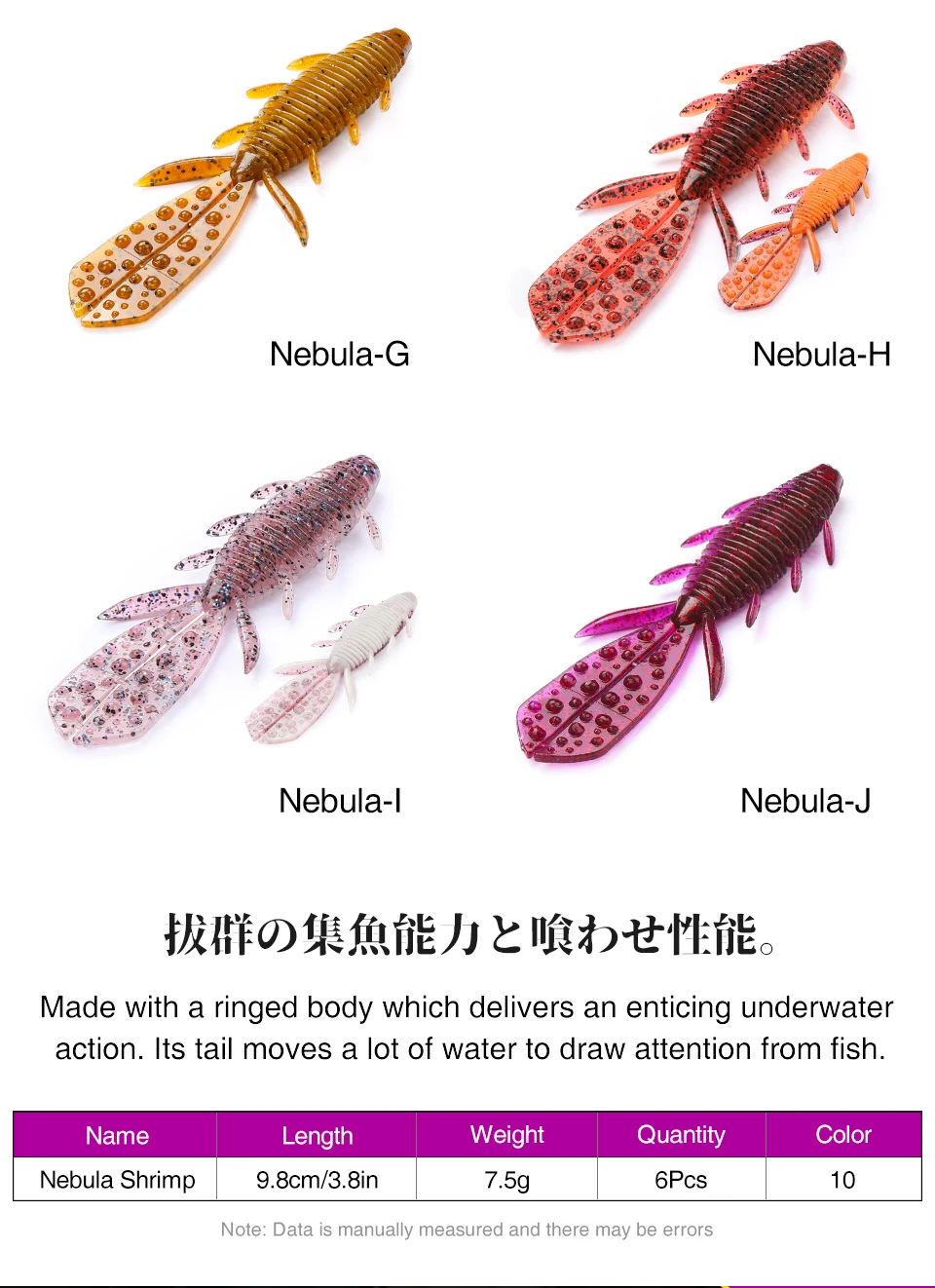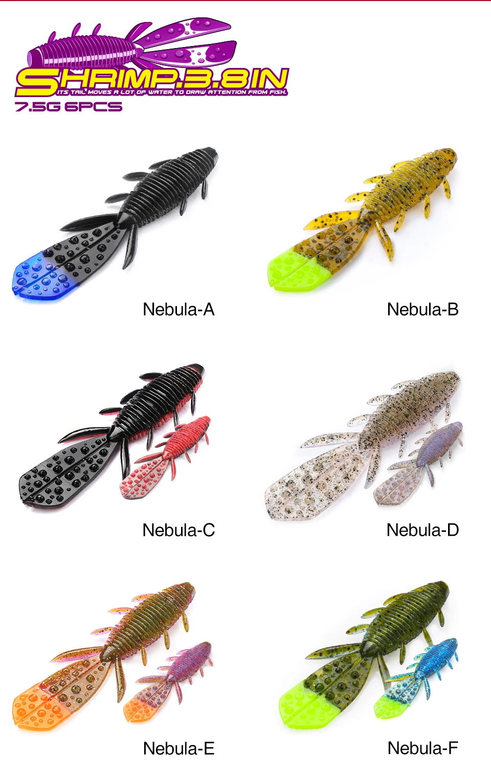 TSURINOYA 9,7 cm 7.5g 6 uds Señuelo de pesca suave para camarones NEBULA Agregar sal y camarones Sicila Artificial cebos blandos aparejos de aparejo de pesca