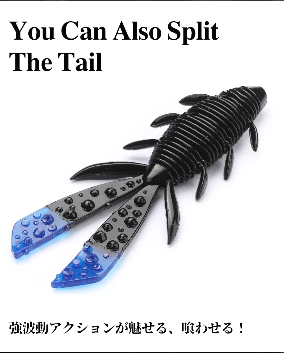 1.Fabricado con un cuerpo anular que proporciona una atractiva acción submarina.Su cola mueve mucha agua para llamar la atención de los peces.