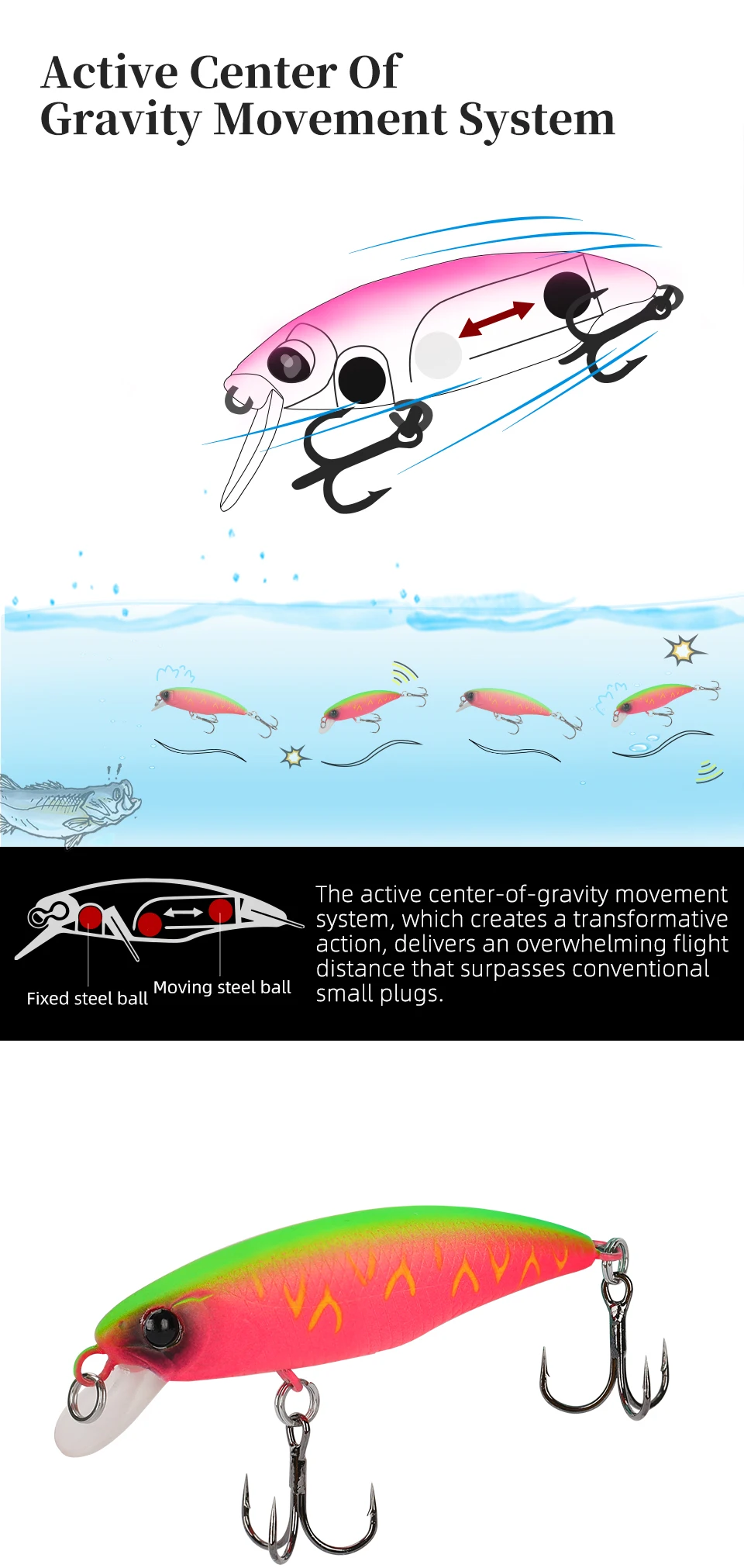 3.El sistema de equilibrio móvil activo impulsa una distancia de lanzamiento incomparable por su tamaño y guía una acción de natación realista.