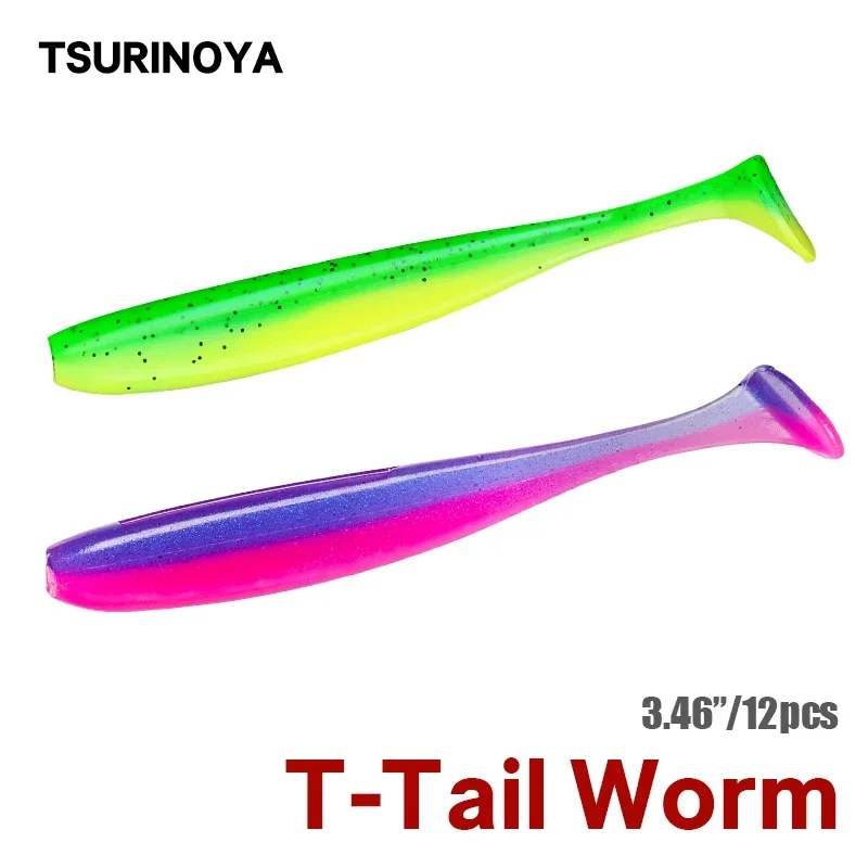 TSURINOYA, nuevo tamaño, 88mm, 3,6g, cola en T, señuelos blandos de gusano, fácil brillo, cebos blandos artificiales, olor añadido para Wobblers de pesca de lubina