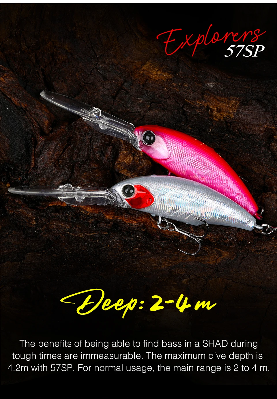 Los beneficios de poder encontrar bajos en un SHAD durante los tiempos difíciles son inmensurables.La profundidad máxima de inmersión es de 4,2 m con 57SP.Para uso normal, el alcance principal es de 2 a 4 m.