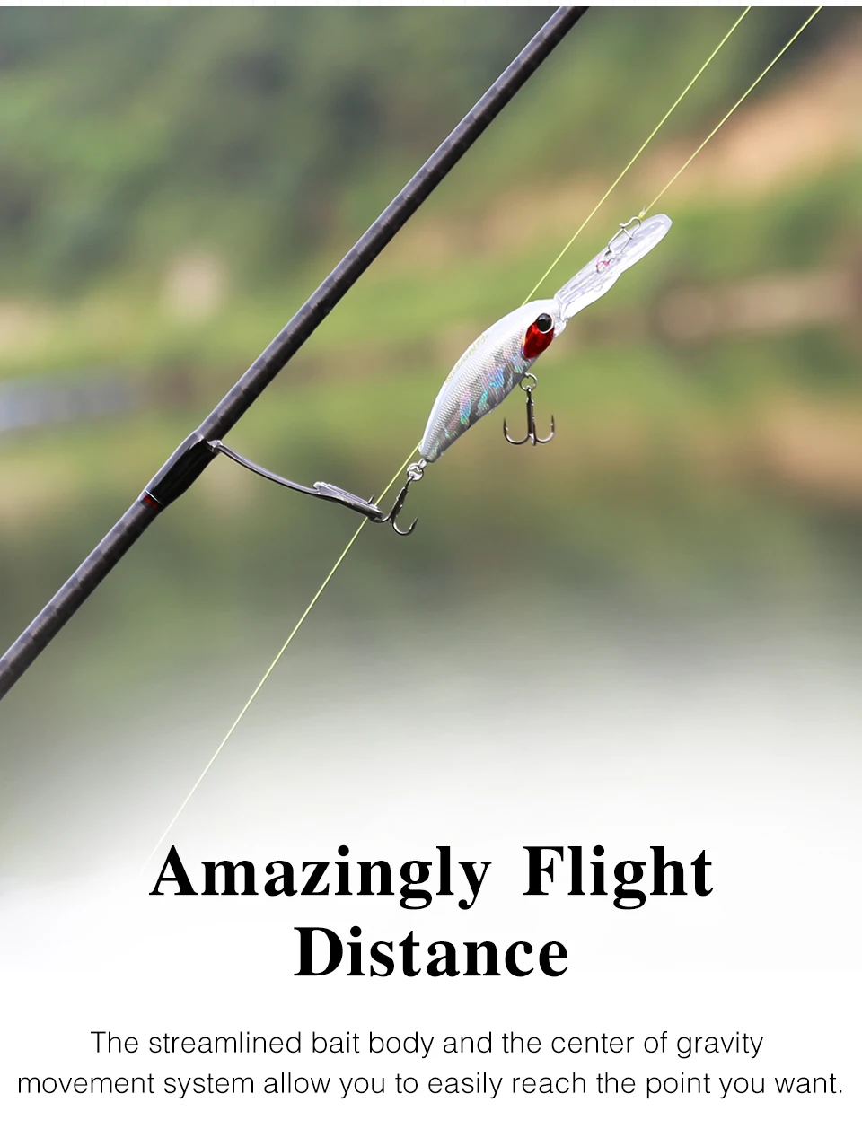 El cuerpo aerodinámico del cebo y el sistema de movimiento del centro de gravedad le permiten alcanzar fácilmente el punto que desea.