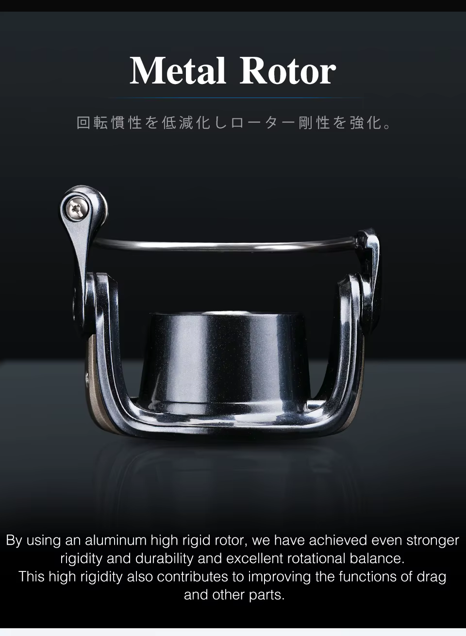 Al utilizar un metal totalmente altamente rígido, la flexión, la distorsión y la torsión del carrete se suprimen firmemente.Protege el delicado engate del engranaje y permite un enrollado suave
