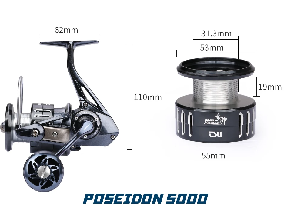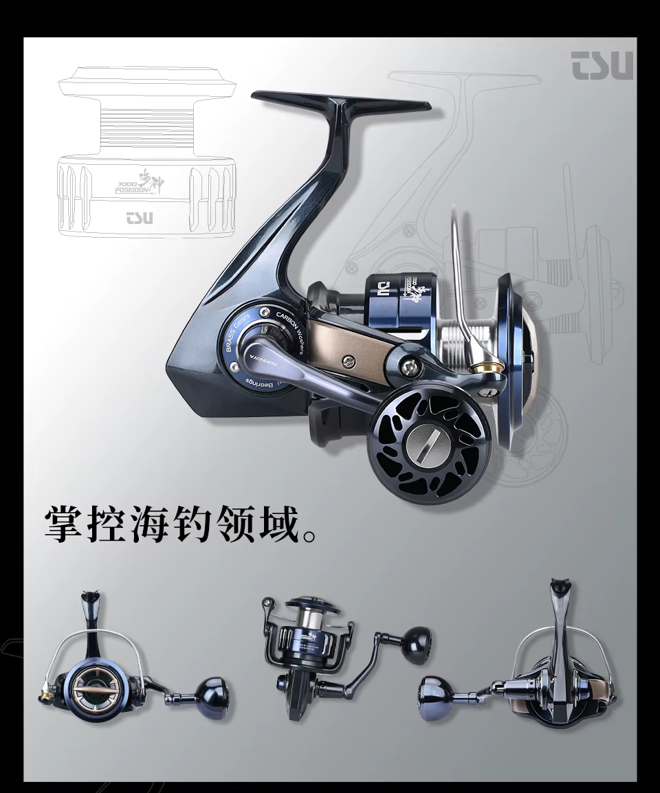 TSURINOYA carrete de pesca giratorio de agua salada de alta resistencia POSEIDON 7000 5,9:1 20 kg rueda de pesca de mar de gran juego