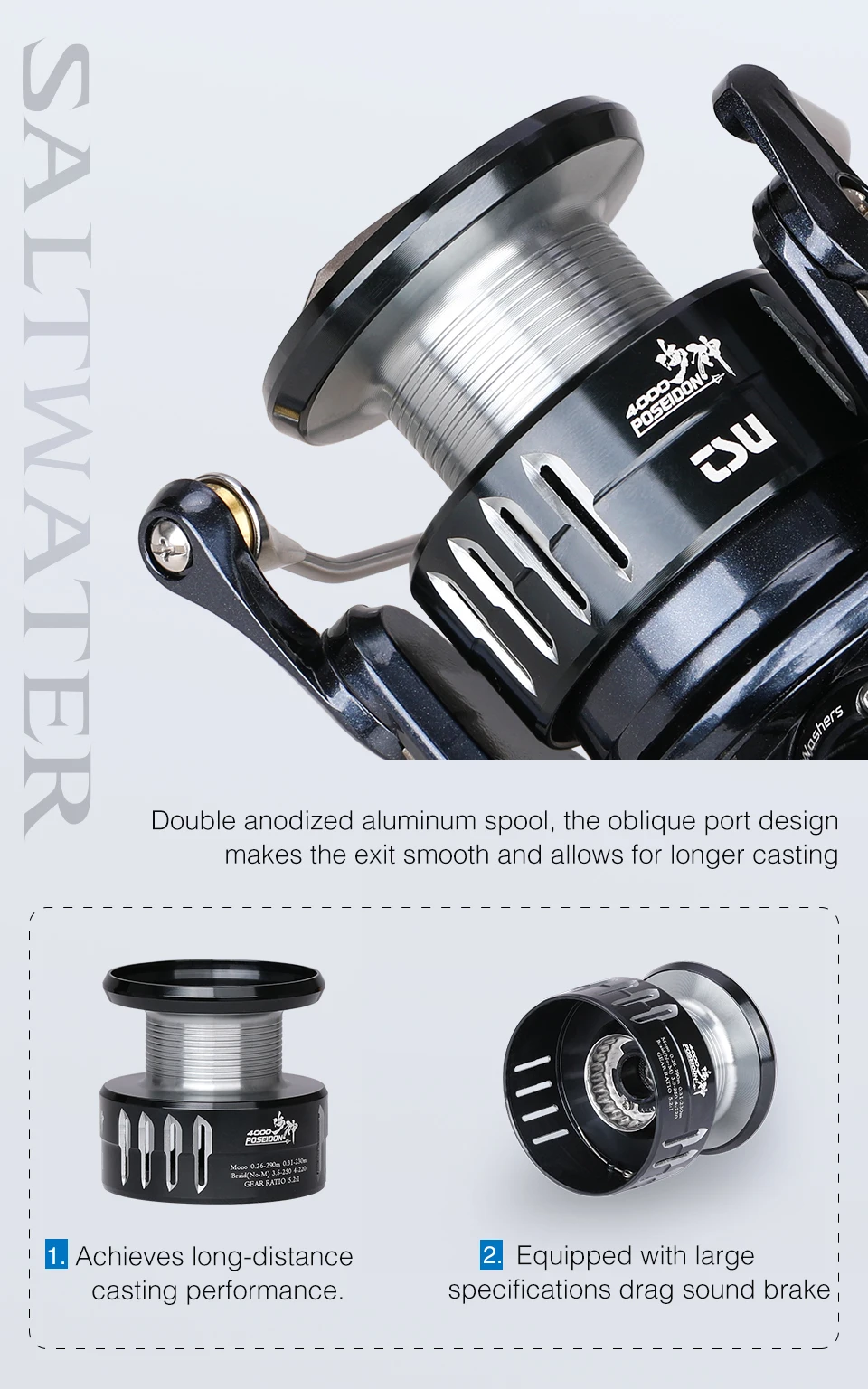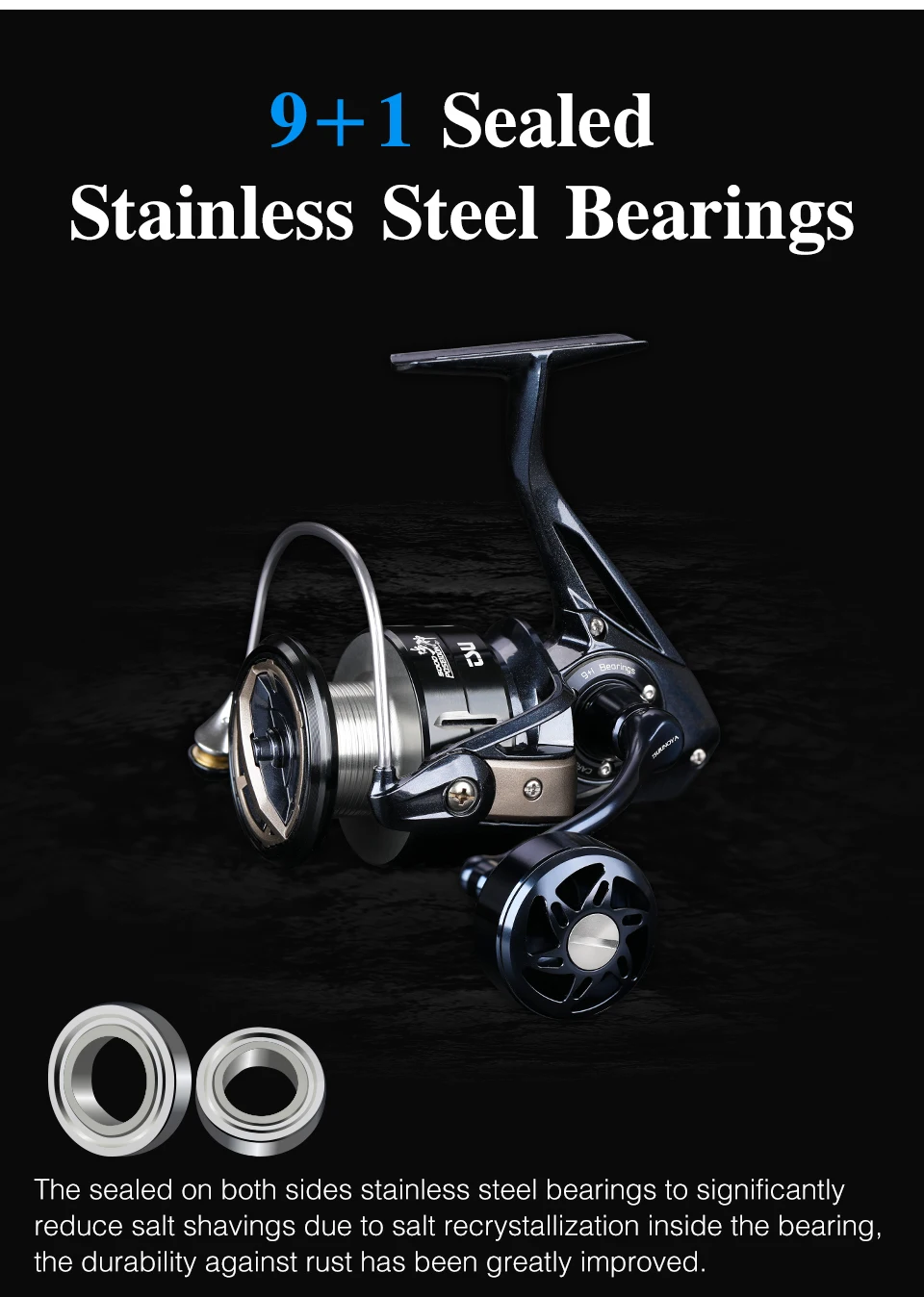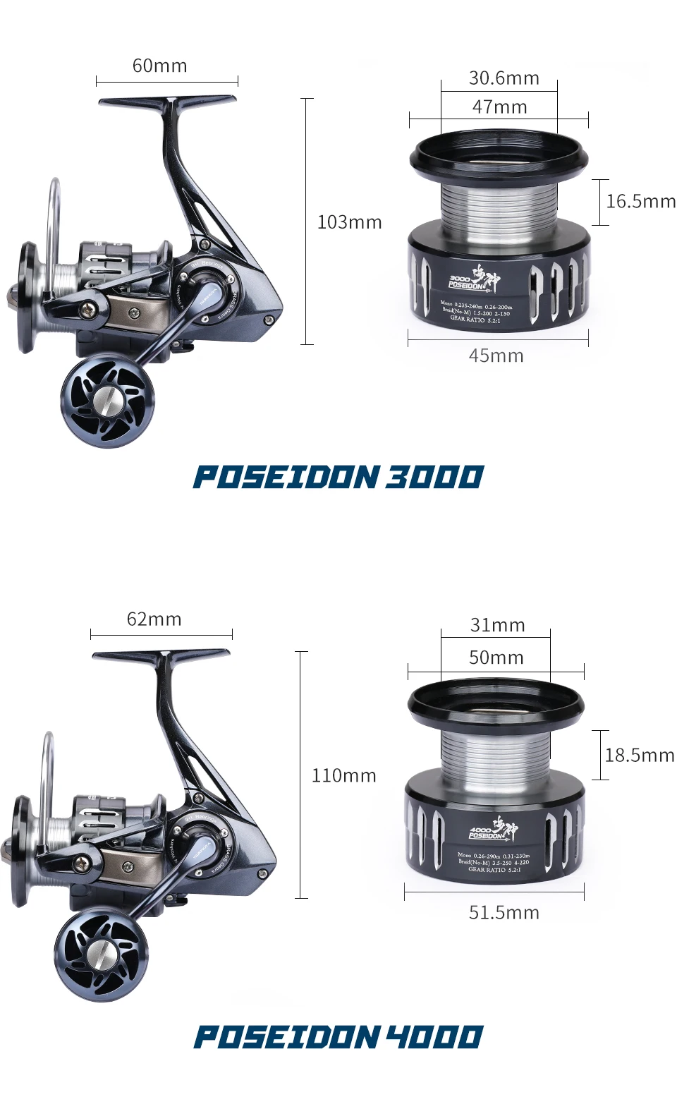 TSURINOYA POSEIDON-carrete giratorio de Metal para pesca vertical, bobina de bote de agua salada, potencia de arrastre de 20kg, 10BB, serie 3000-7000