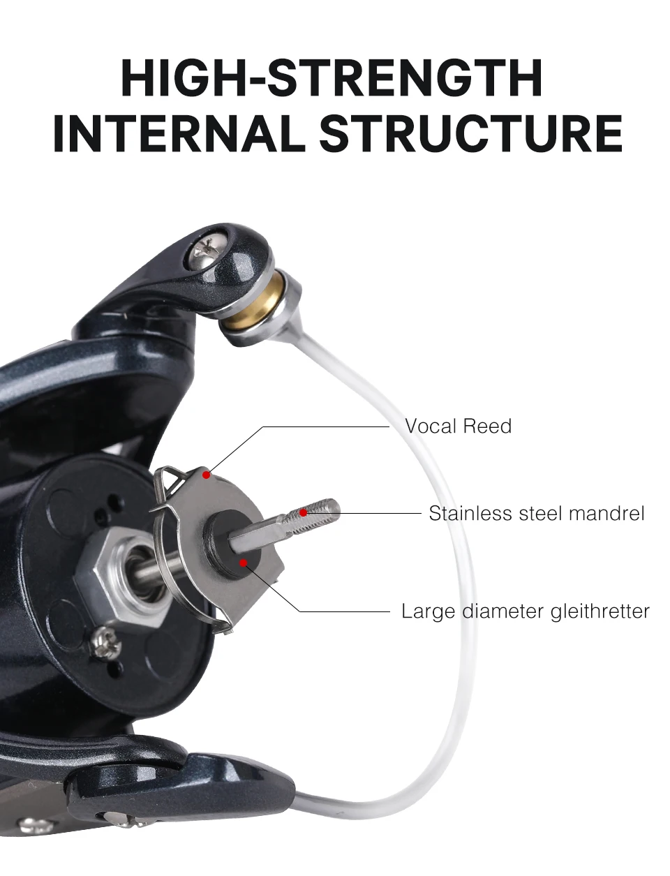 2.Carrete poco profundo biselado que libera la línea sin problemas y extiende la distancia de vuelo.