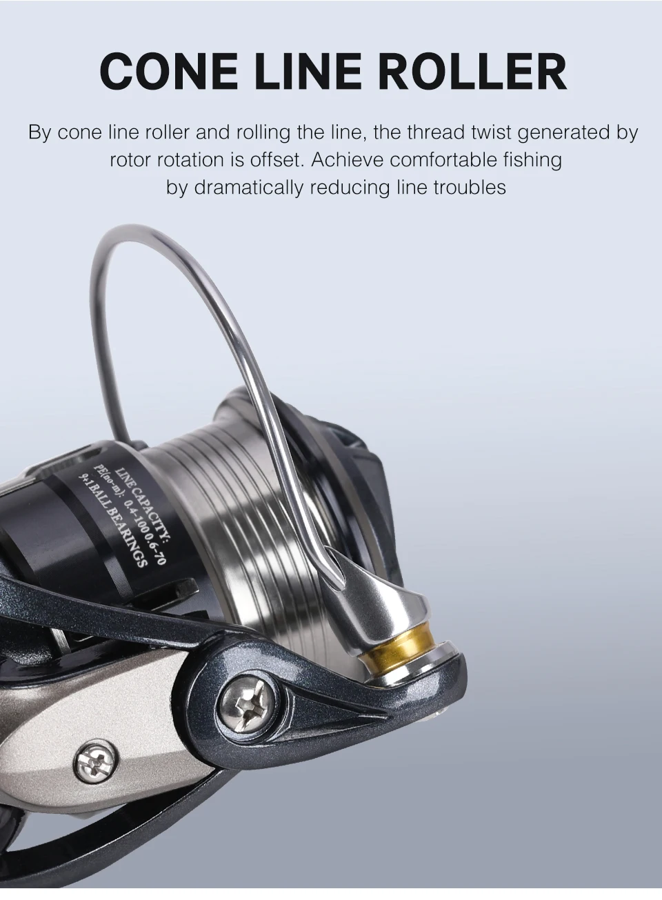 7.Rodamientos de acero inoxidable 9+1 que extienden efectivamente la vida útil de los carretes giratorios.
