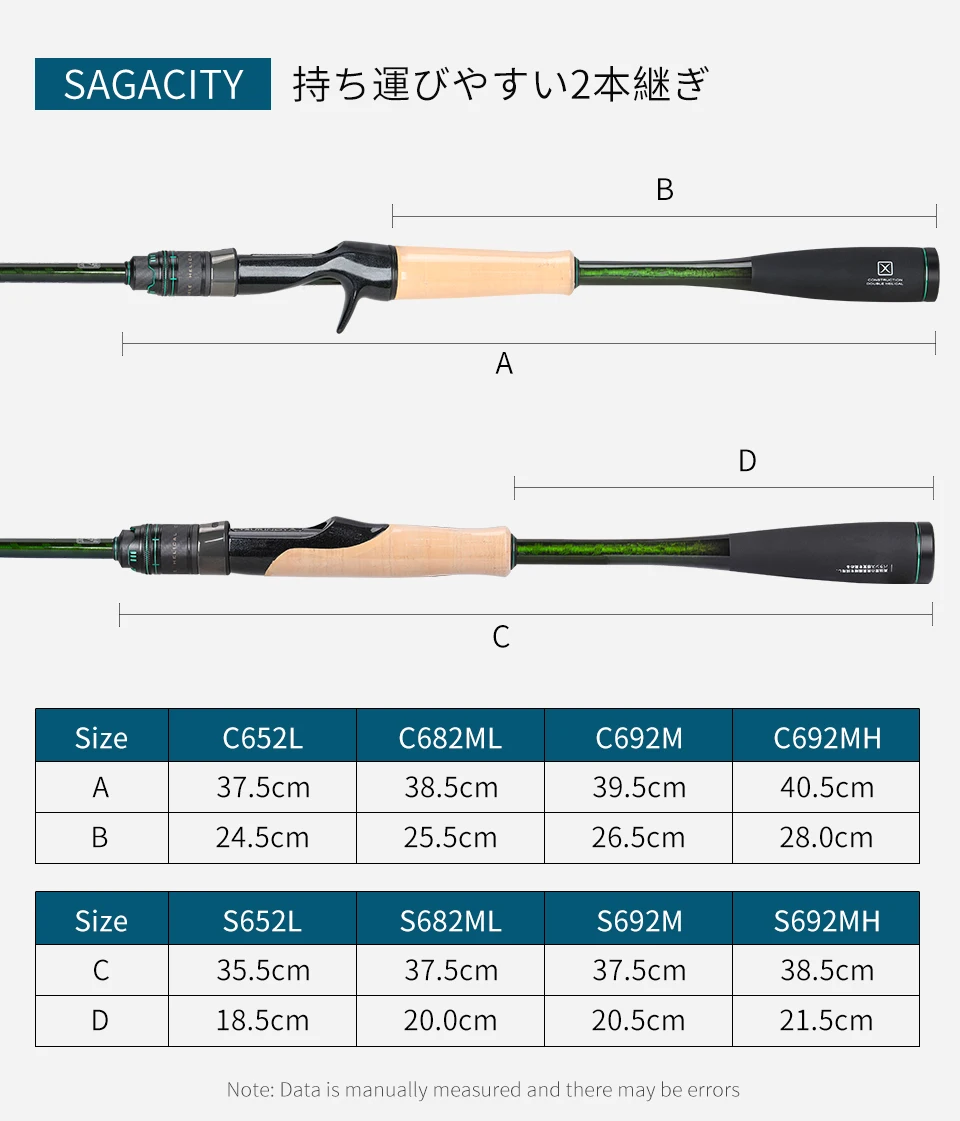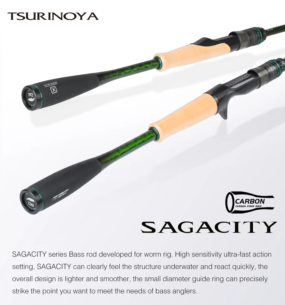 TSURINOYA 1.96m 2.03m 2.06m Fast Action L ML M MH SAGACITY Race Bass Rod 2 Section Bass Gaming FUJI Guide Rings Carbon Rod