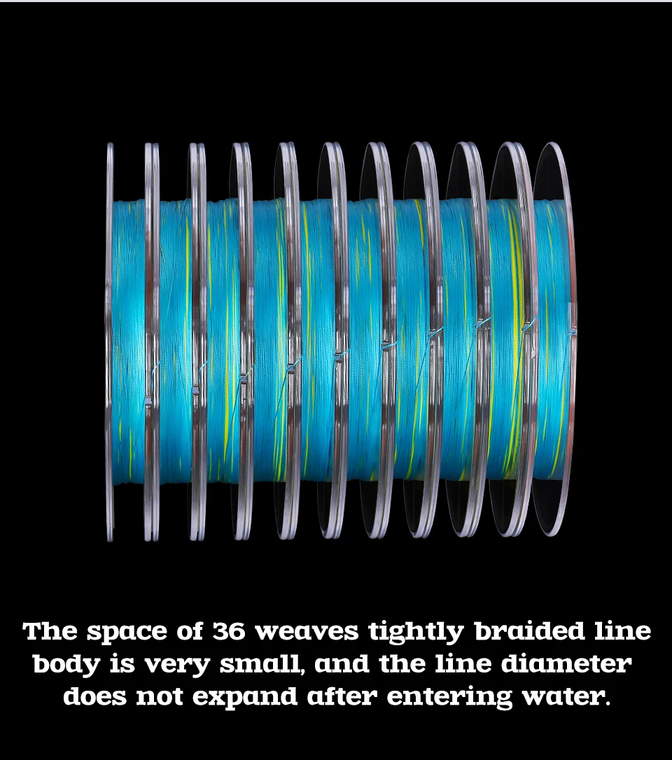 1. El espacio de 36 tejidos de cuerpo de línea bien trenzado es muy pequeño, y el diámetro de la línea no se expande después de entrar en el agua.