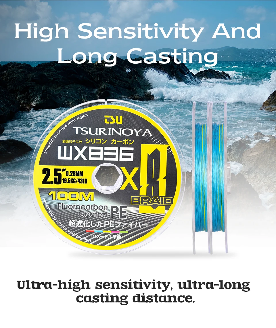 TSURINOYA 100-1000m 25-37lb línea 36 teje 8 hebras alta fuerte suave multifilamento PE sedal para la pesca en agua salada