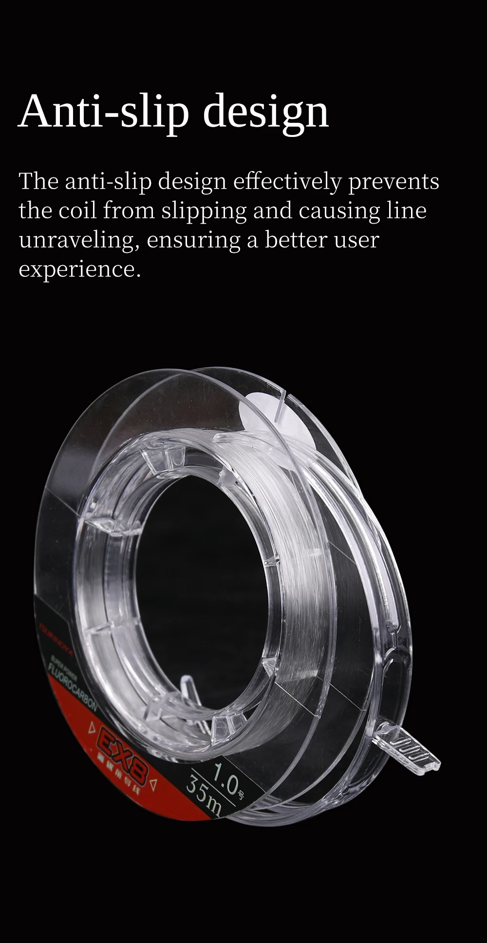 Funciona como un monofilamento normal y ofrece un manejo excepcional en los carretes giratorios y lanzados.La línea de fluorocarbono se hunde muchas veces más rápido que las líneas tradicionales de nailon, lo que permite que la presentación se hunda en la zona de golpe más rápido.
