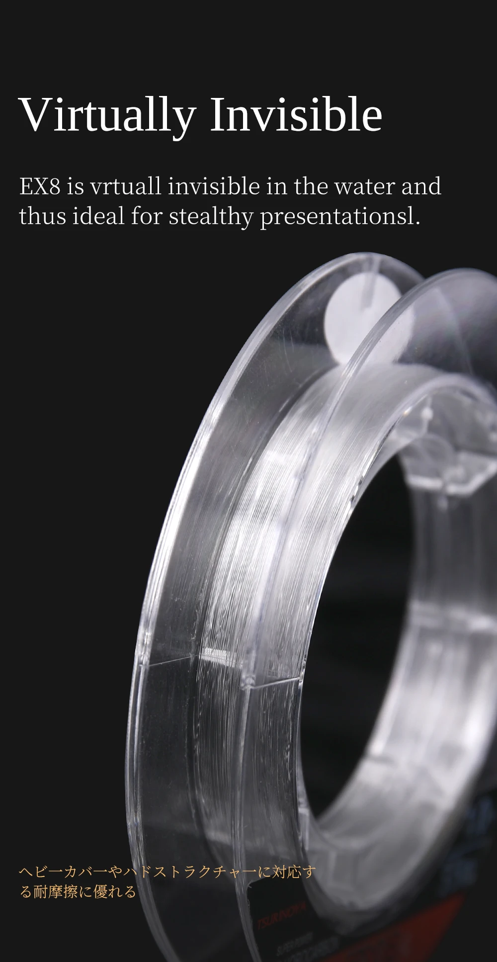 EX8 es extremadamente resistente a la abrasión, lo que lo hace duradero para pescar con estructuras rugosas y peces de boca resistente.