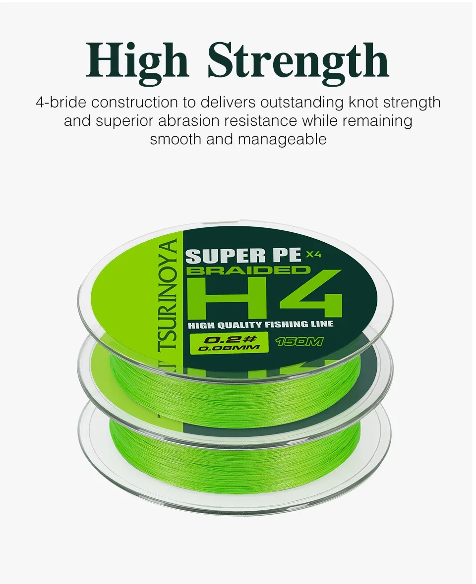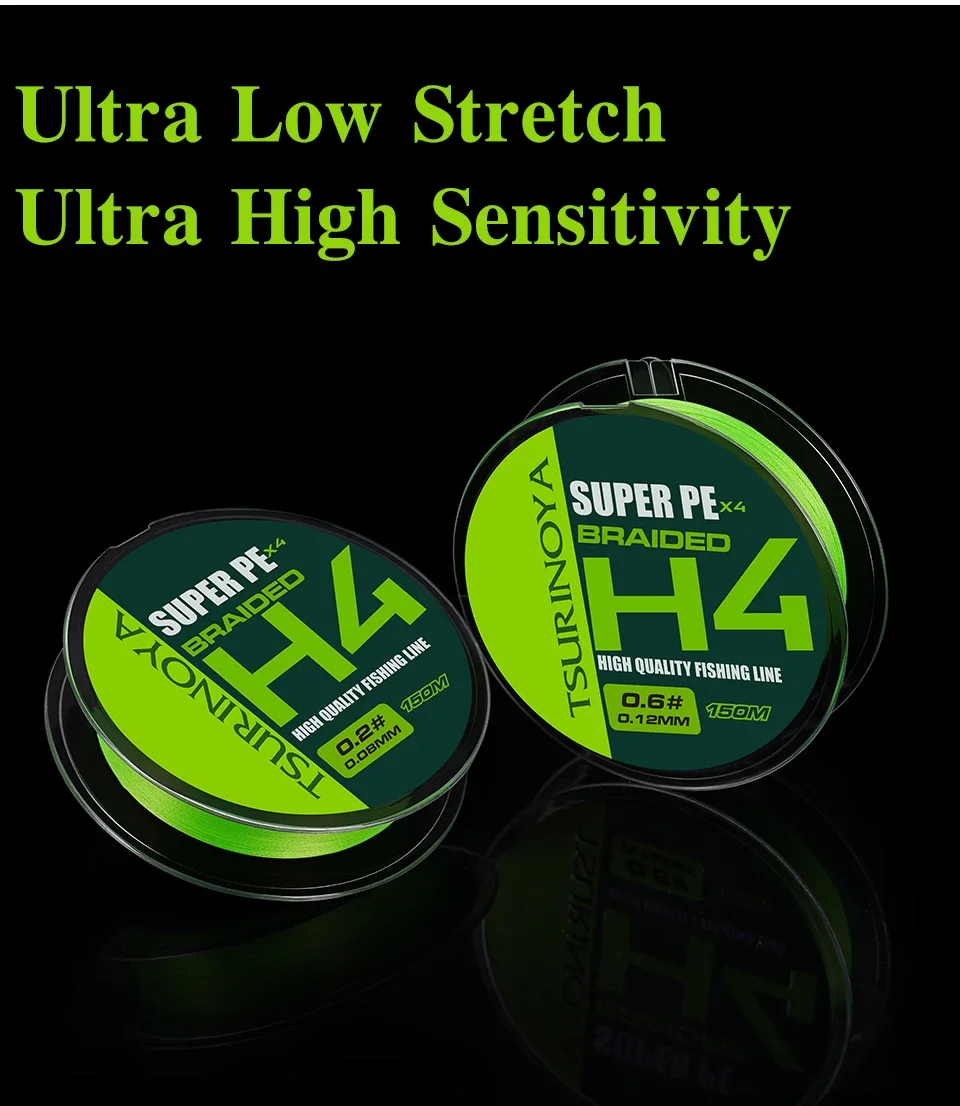 TSURINOYA-sedal de pesca de PE, 150m, 4 tejidos, H4, 4-8lb, juego ligero, juego de trucha, fundición larga, 4 hebras trenzadas, línea multifilamento suave