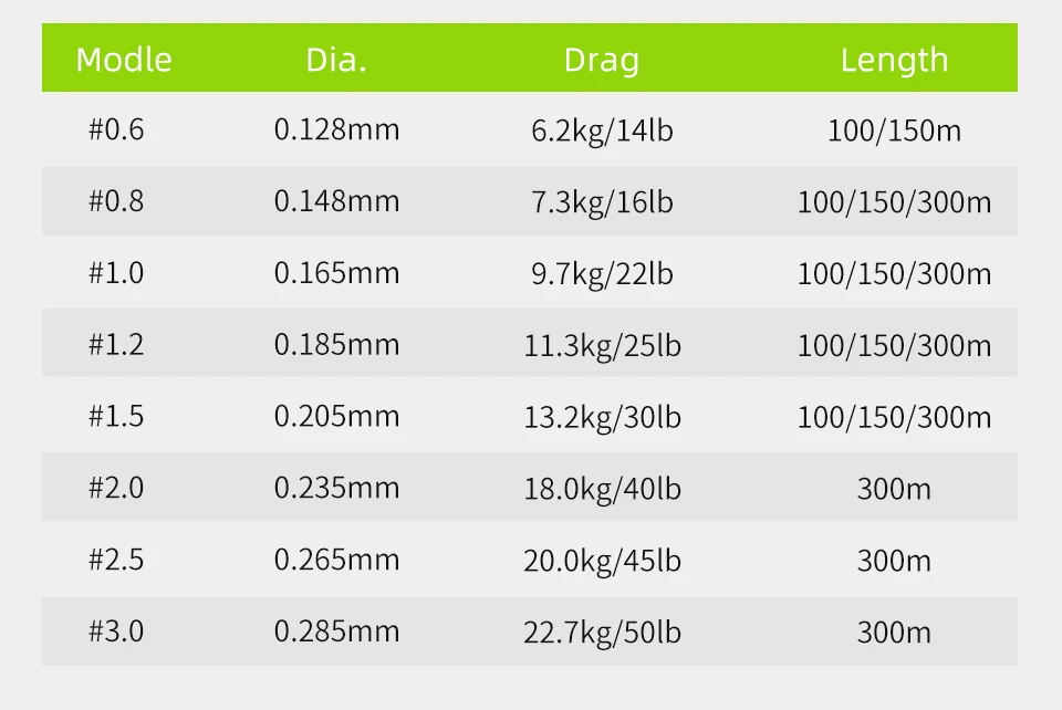Variante: Color:H8-Green-150m Line Number:0.8 0.148MM 16LB