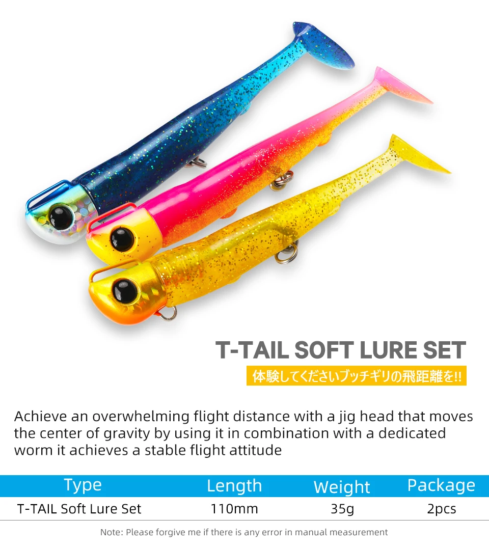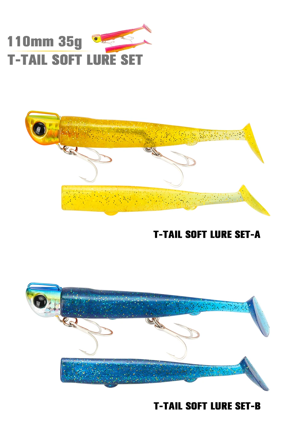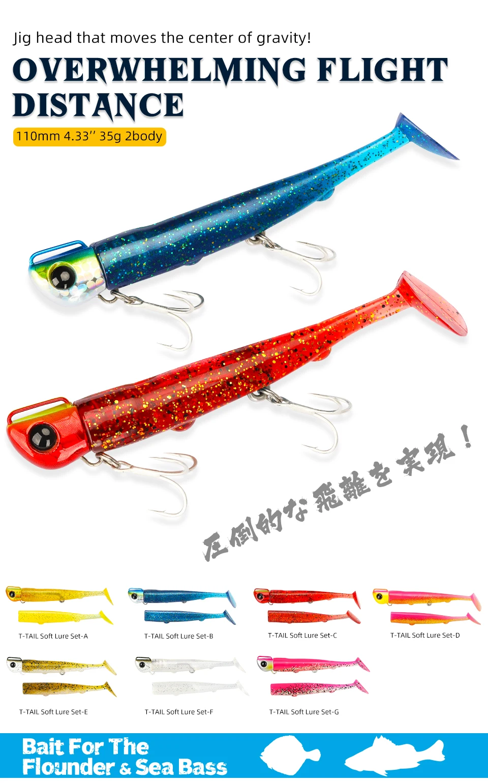 TSURINOYA de fundición larga 2 piezas de cabeza de plantilla de cola en T de 110mm 35g de agua salada de hundimiento cebo duro de alta resistencia platija señuelo de pesca de lubina