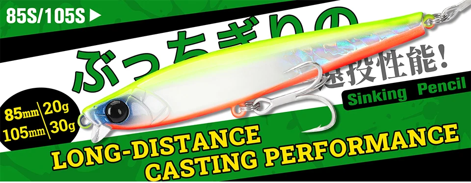 TSURINOYA de fundición larga 2 piezas de cabeza de plantilla de cola en T de 110mm 35g de agua salada de hundimiento cebo duro de alta resistencia platija señuelo de pesca de lubina