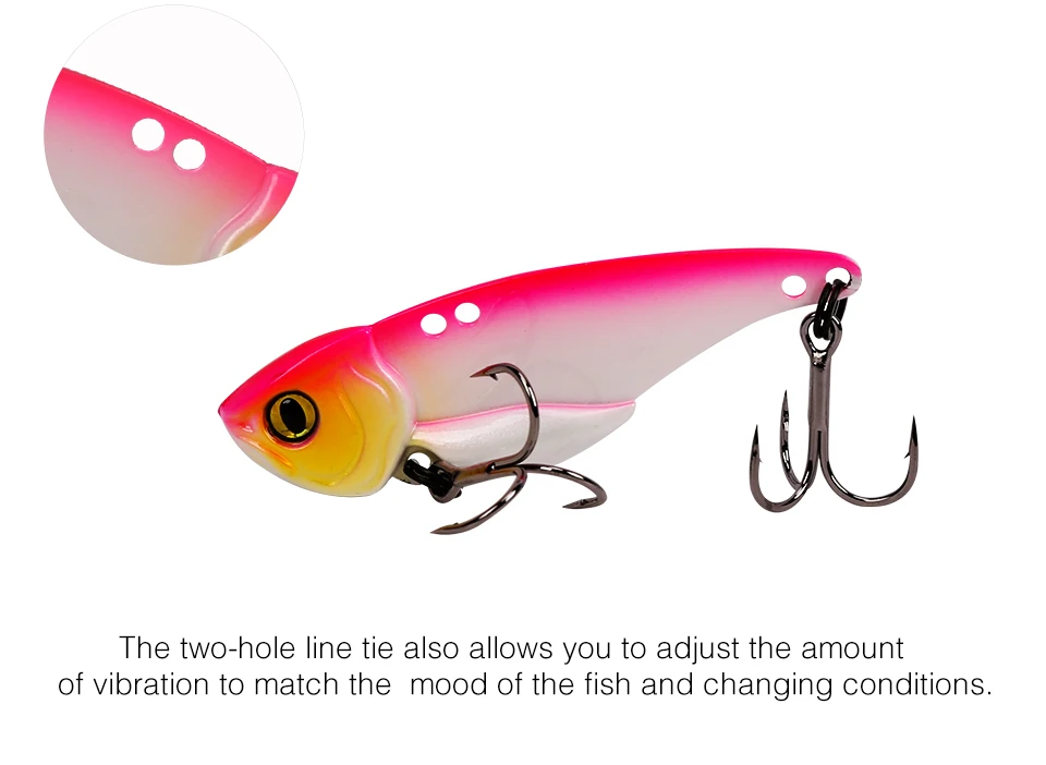 La corbata de dos agujeros también te permite ajustar la cantidad de vibración para que coincida con el estado de ánimo de los peces y las condiciones cambiantes