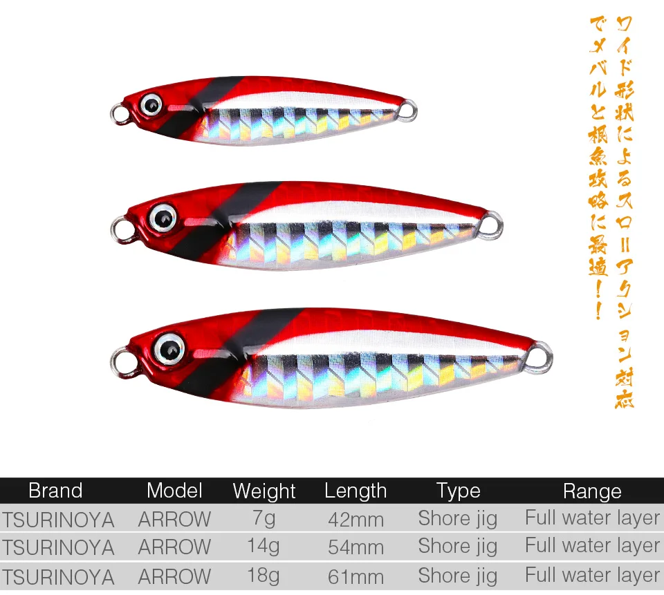 TSURINOYA Señuelo de Metal ARROW InShore Jigging Señuelo 7g 14g 18g Barco Trolling Lento Jig Cebo Luminoso Pesca Wobblers Metal Swimbait