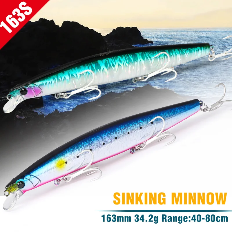 TSURINOYA-señuelo de pesca de 163mm, 163g, modelo de pesca de potencia, lubina, platija, señuelo grande, juego SW, STINGER 34,2 S