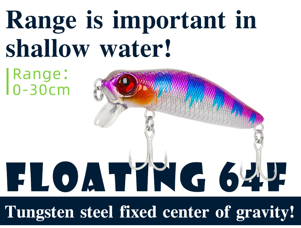 2. Un señuelo para capturar desde la superficie hasta 30 cm por debajo de la superficie del agua. Dado que la flotabilidad se establece al límite, se puede asegurar una distancia de vuelo estable incluso con el viento.