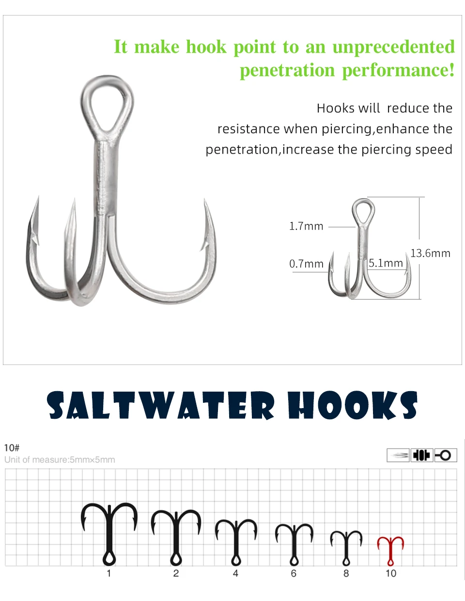 5. Ganchos: anzuelos triples de agua salada