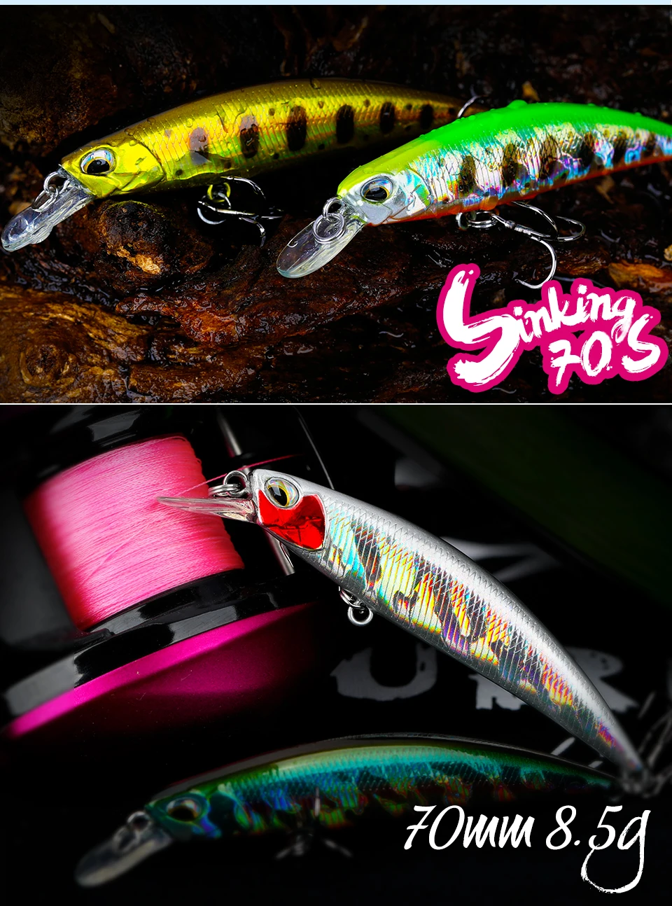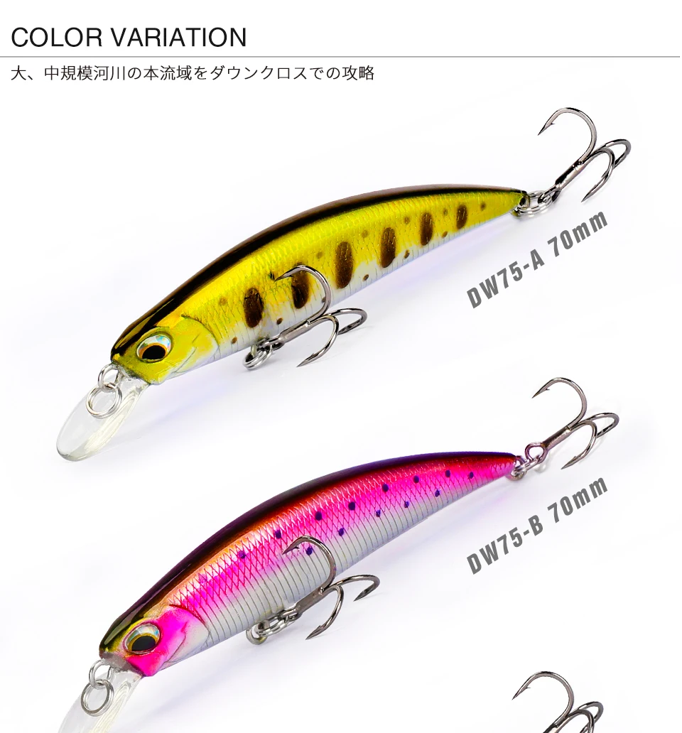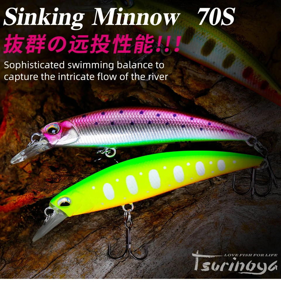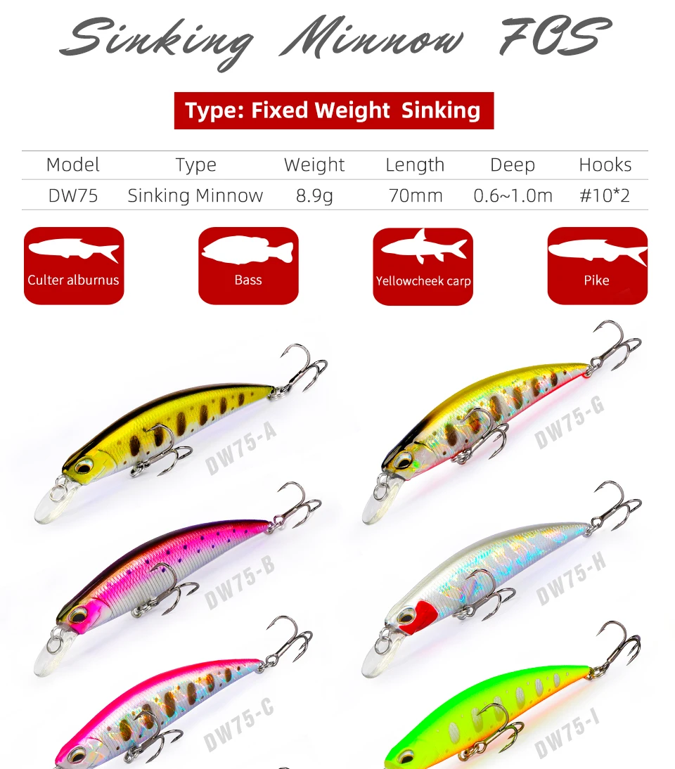 TSURINOYA-señuelo de pesca de 6 piezas, DW75, 70mm, 8,9g, cebo duro Minnow con gancho, plástico ABS, Isca, Leurre Artificial