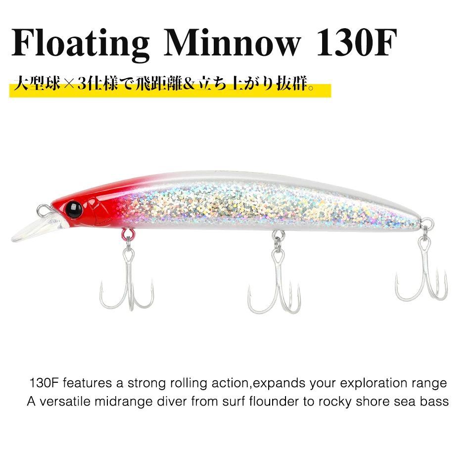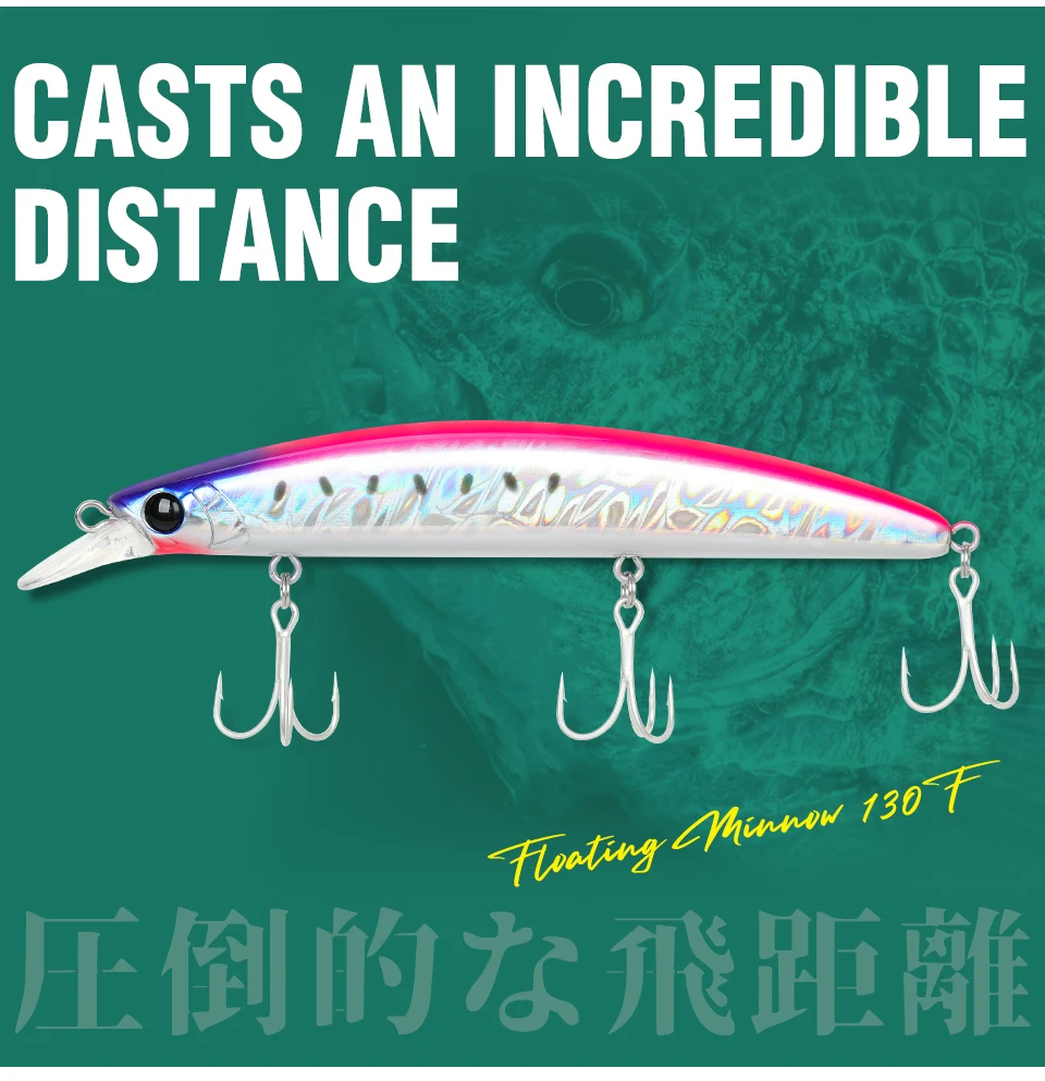 TSURINOYA-señuelo de pesca de agua salada, cebo duro flotante de fundición larga, Minnow, 130mm, 23g, DW111, 7 unidades