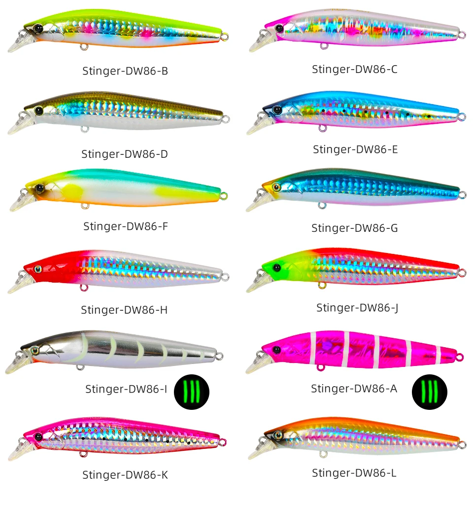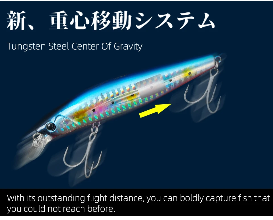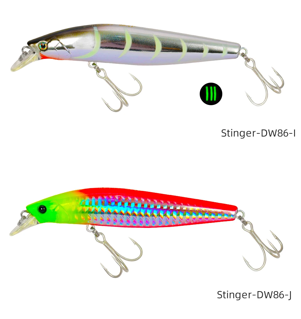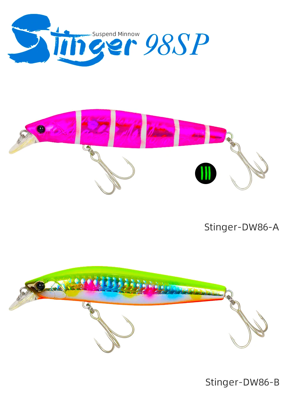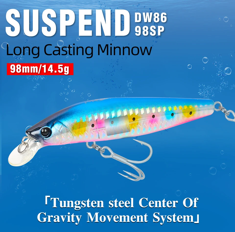 TSURINOYA-señuelo de pesca de agua salada, pececillo suspendido, DW86, 98mm, 14,5g, sistema de peso de tungsteno, cebos Wobbler de fundición larga