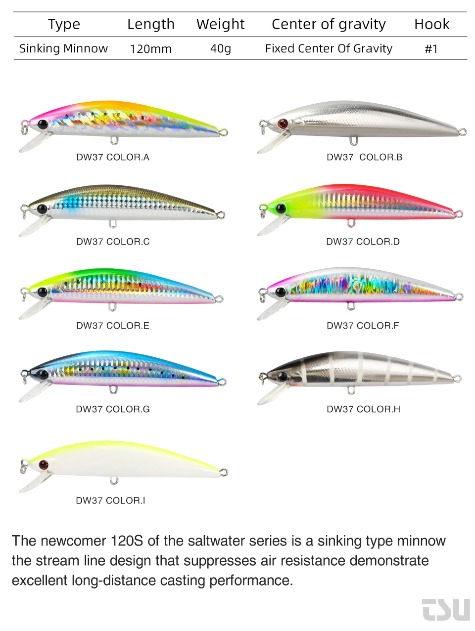 TSURINOYA-señuelo de pesca de alta resistencia, cebo grande para pescar atún GT, DW37 SW, 120S, 120mm, 40g