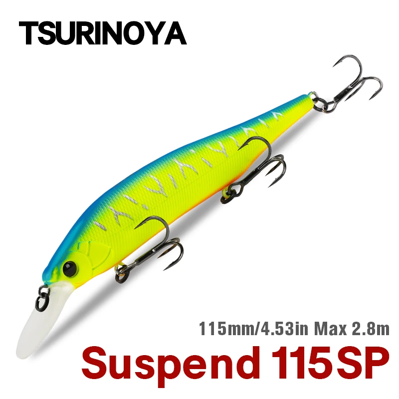 TSURINOYA 115mm 17,2g 115SP sistema de suspensión de peso de tungsteno Minnow señuelo de pesca AURORA Lucio Jerkbait cebo duro
