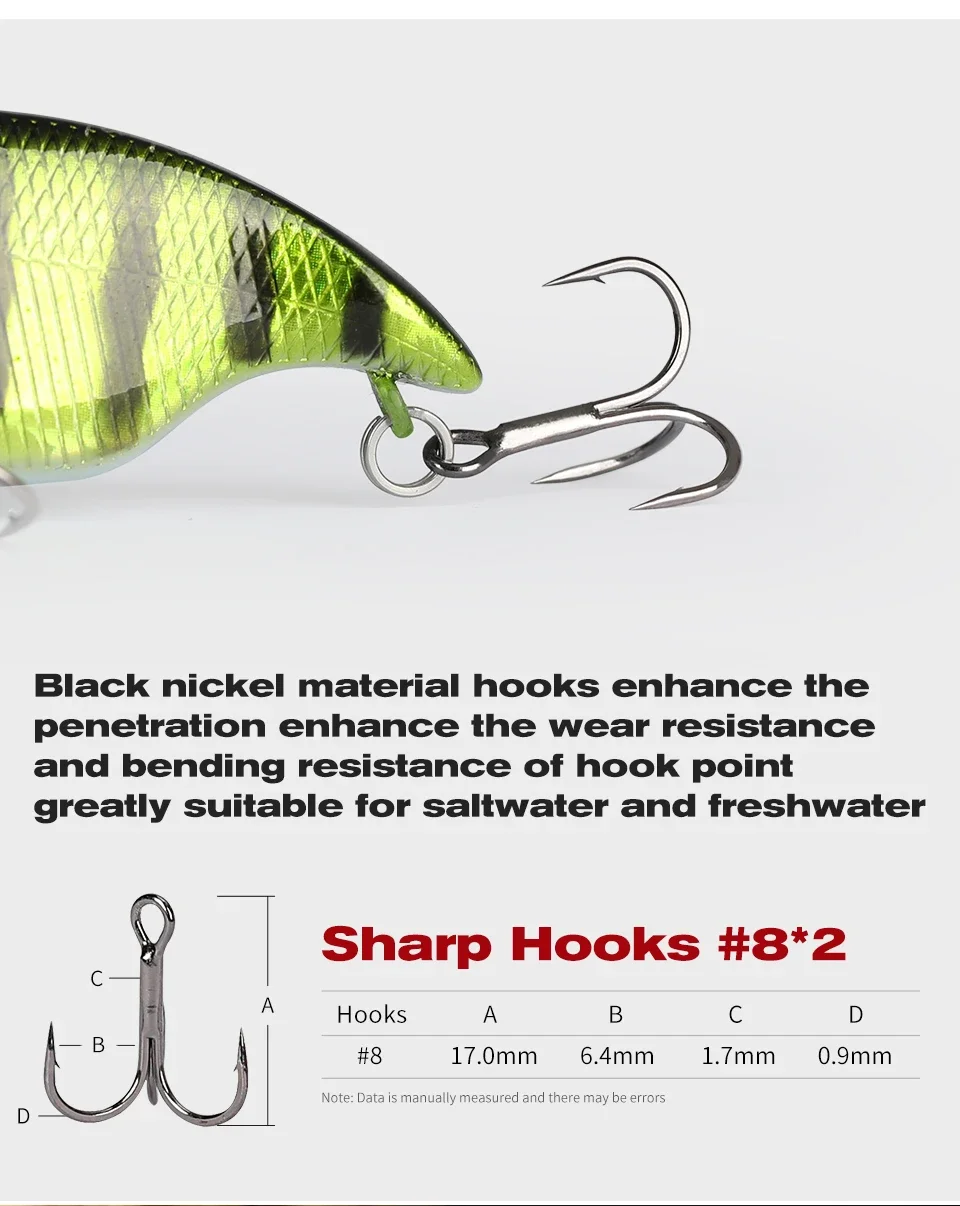 Vibración de tono ultra alto con giros violentos que desencadenan los instintos de lucha de los peces naturales.