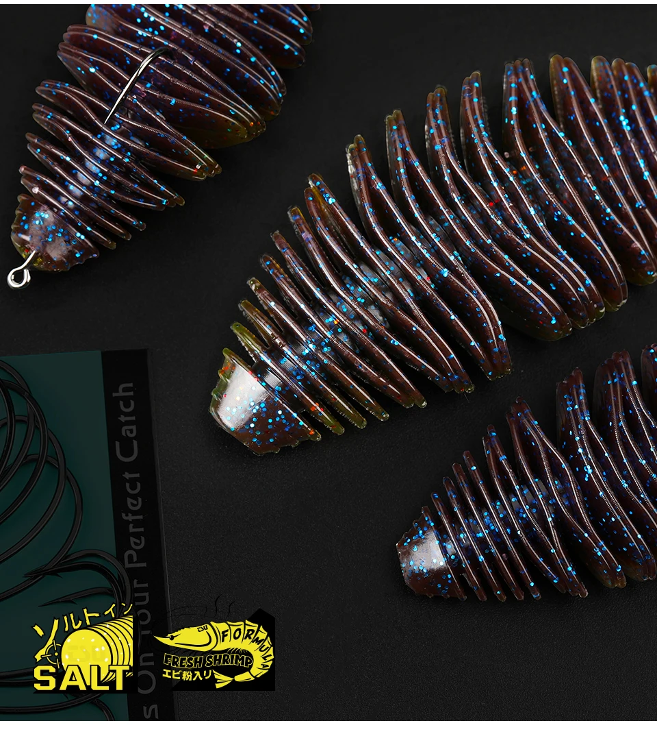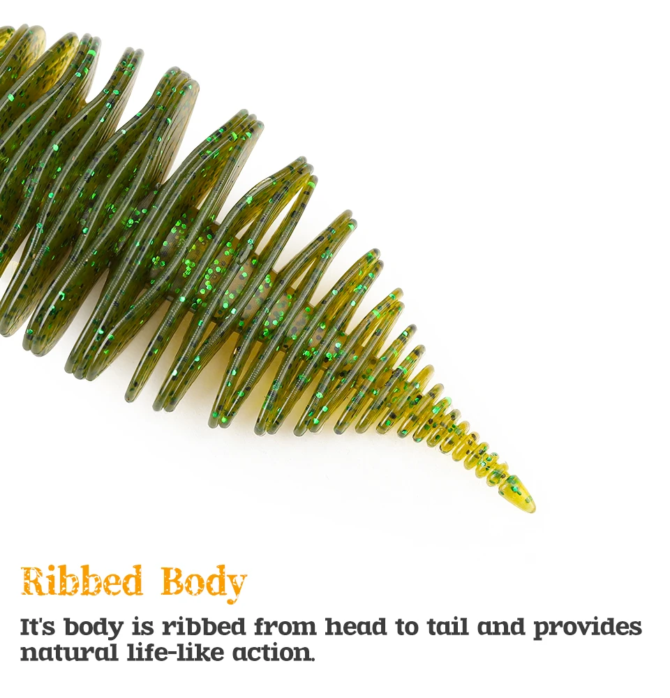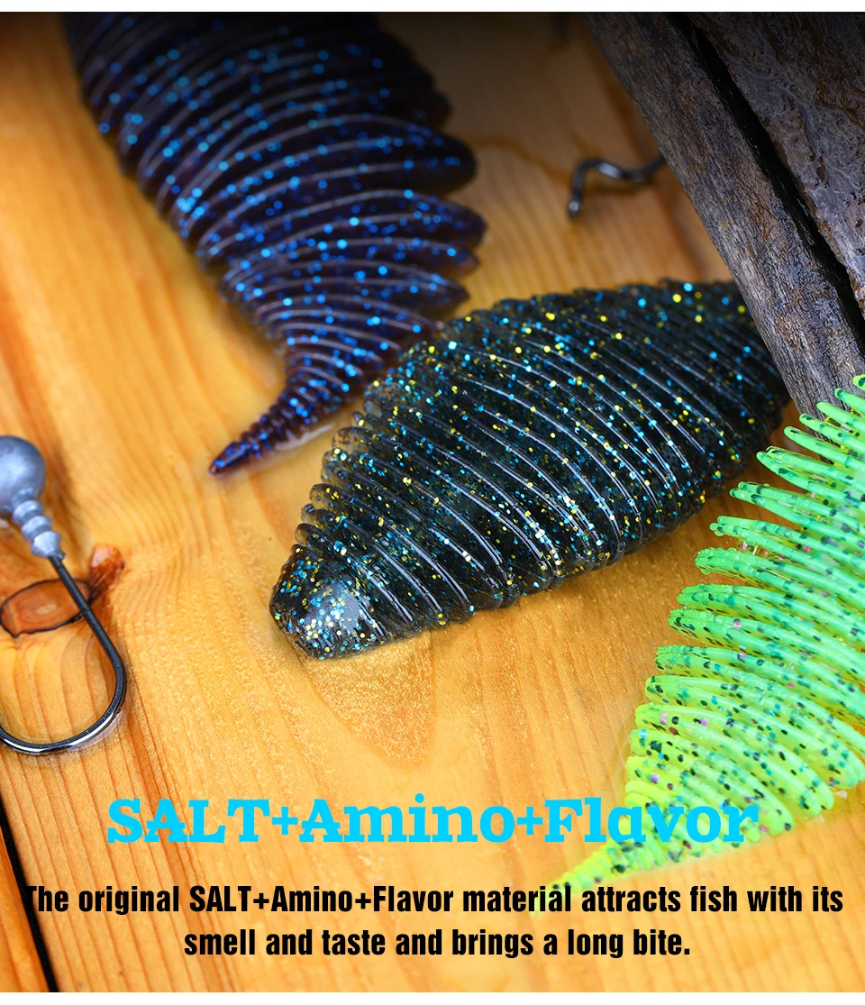 1.Cree más olas: las finas nervaduras profundas del cuerpo mueven más agua y crean más olas. El cuerpo acanalado proporciona más superficie para dispersar aún más aroma. El aroma y el sabor del material harán que el pez sostenga el señuelo en su boca por más tiempo.