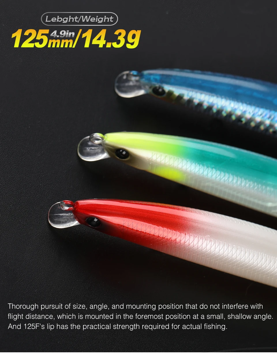 Señuelo flotante de pesca TSURINOYA 125F Ultra largo de fundición Minnow DW72 125mm 14,3g 10-60cm cebos duros de agua salada de rango bajo